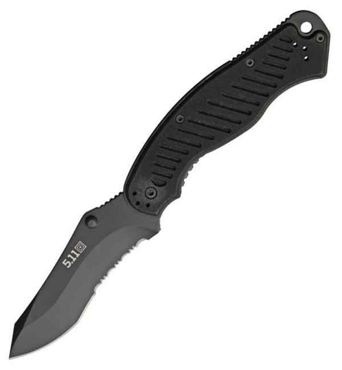 5.11 Tactical 51070 Ark Recurve, 5″ AUS-8 Combo Blade, Black G-10 Handle