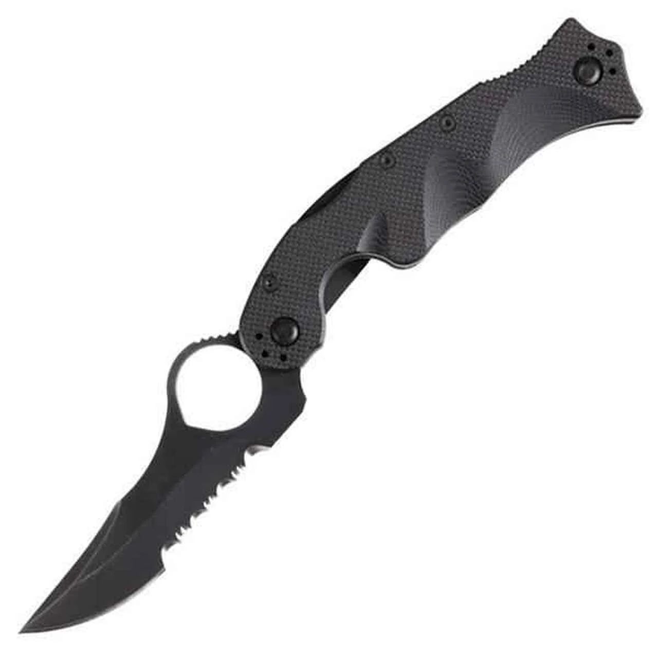 Featuring dual locking AUS 8 steel blades, the Double Duty Karambit Knife combines superior utility and personal defense capability in an ergonomic, high performance package.