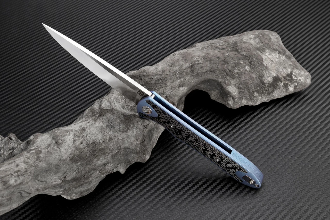 Artisan ATZ1707GBU Shark, 3.94″ S35VN Plain Blade, Blue Titanium TC4 Handle