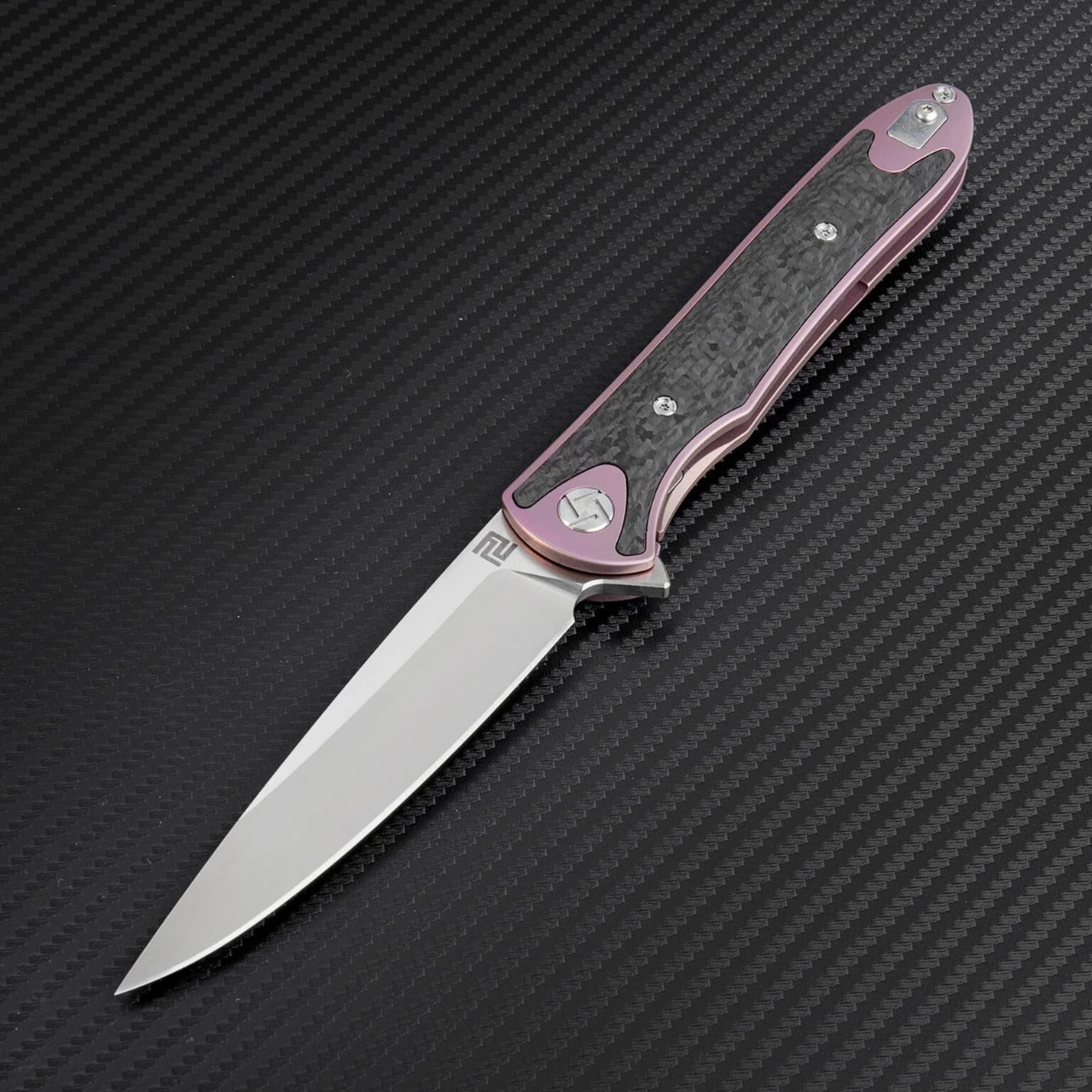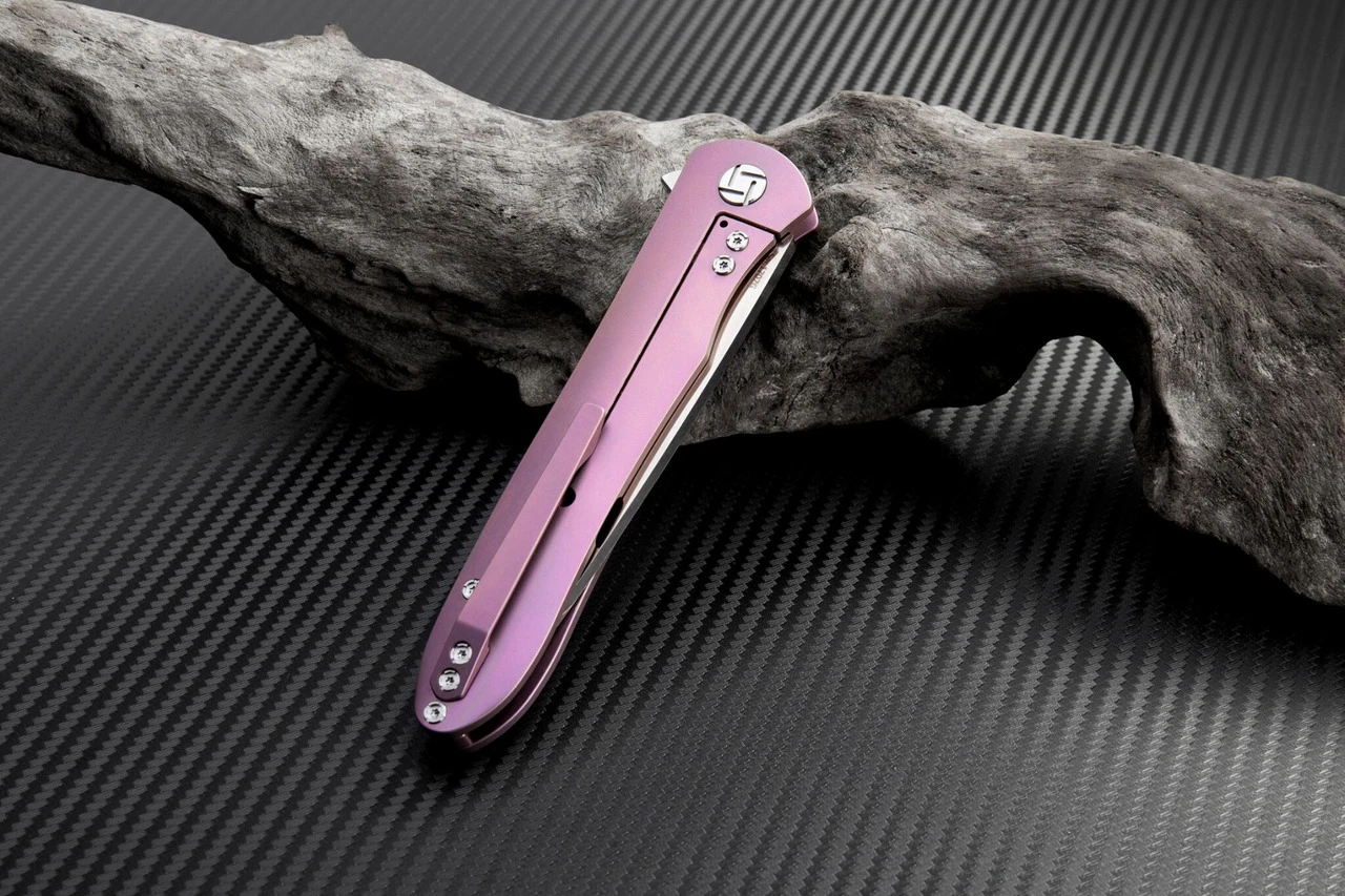 Artisan ATZ1707GRE Shark, 3.94″ S35VN Plain Blade, Purple Titanium TC4 Handle