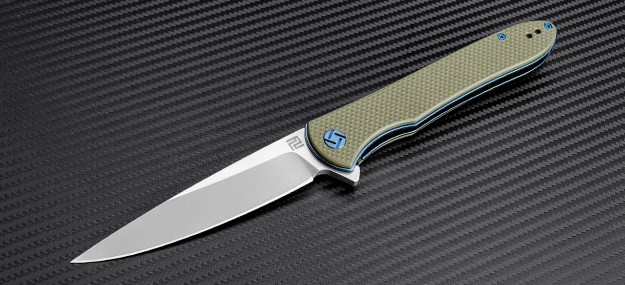 Artisan ATZ1707PGN Shark, 3.94″ D2 Steel Plain Blade, Green G-10 Handle