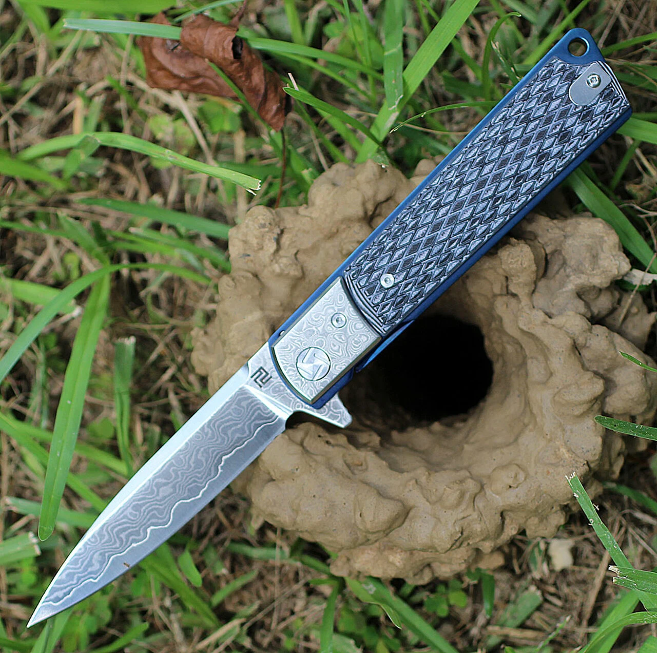 Artisan Classic Damascus ATZ1802GDBK, 3.94″ Damascus Plain Blade, Black G10/Damascus Sand Handle