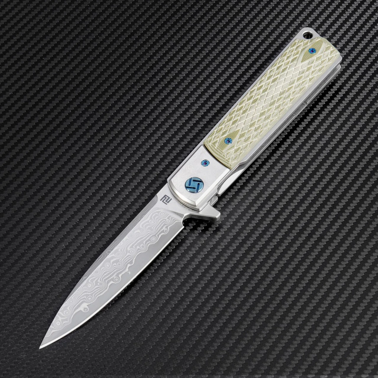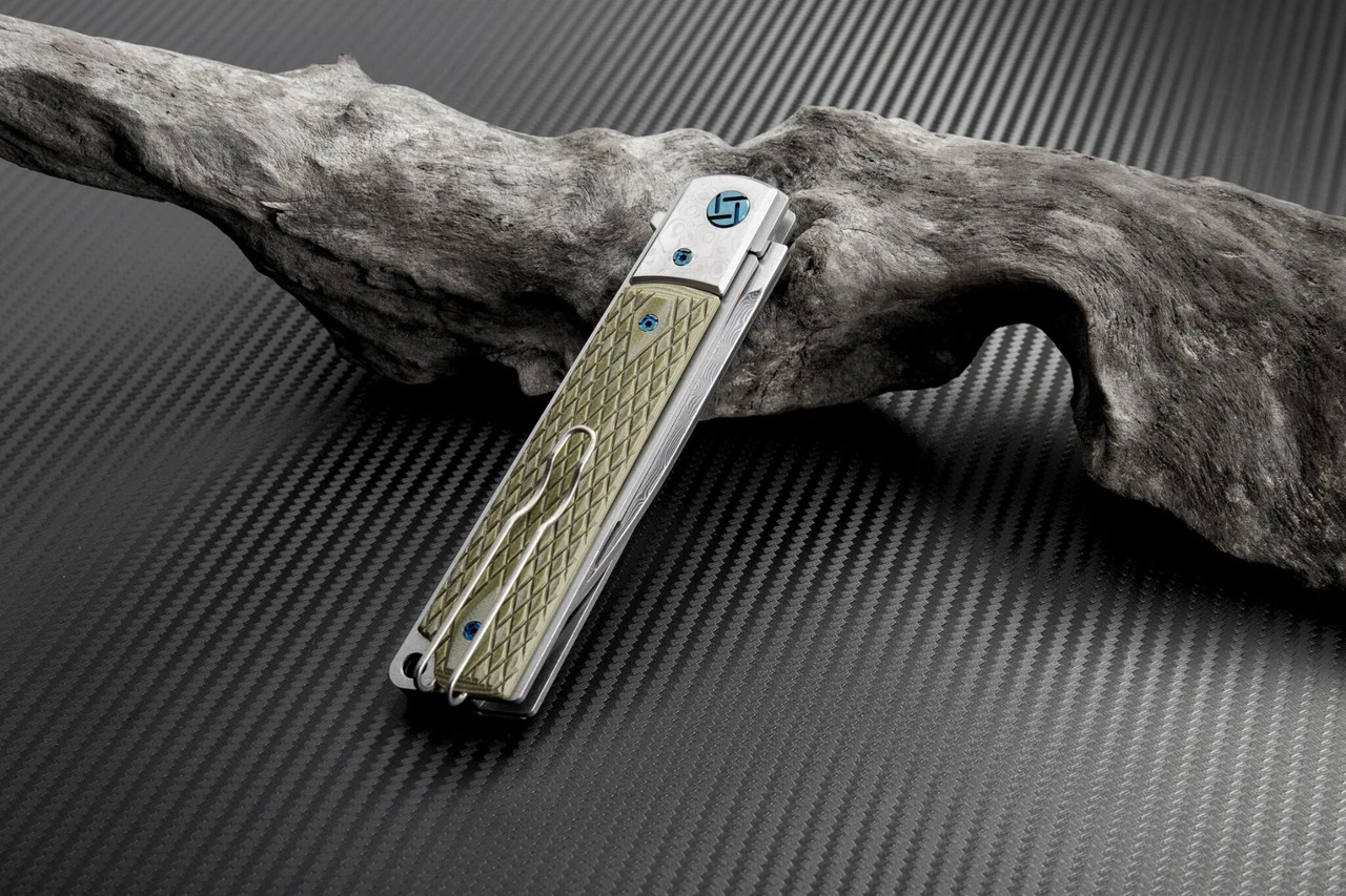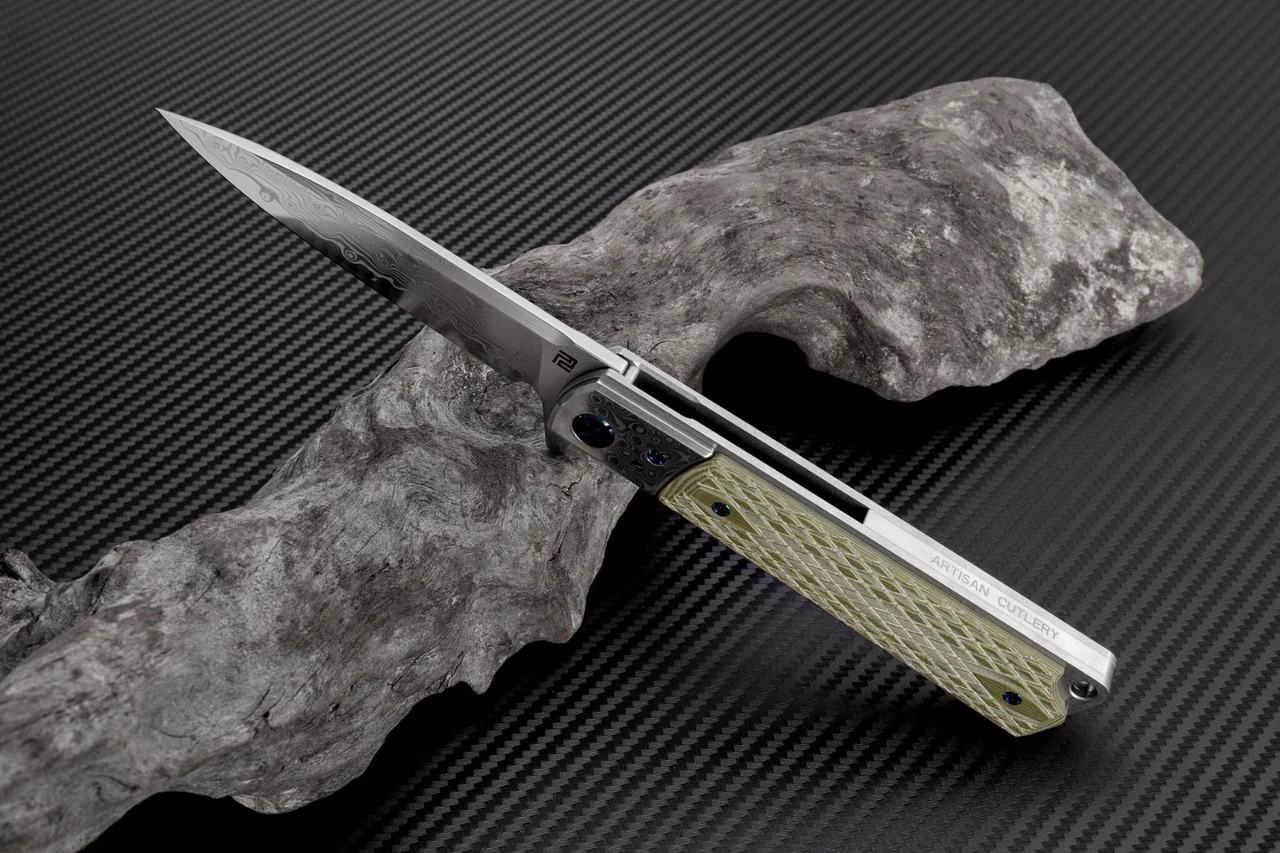 Artisan Classic Damascus ATZ1802GDGN, 3.94″ Damascus Plain Blade, Green G10/Damascus Handle
