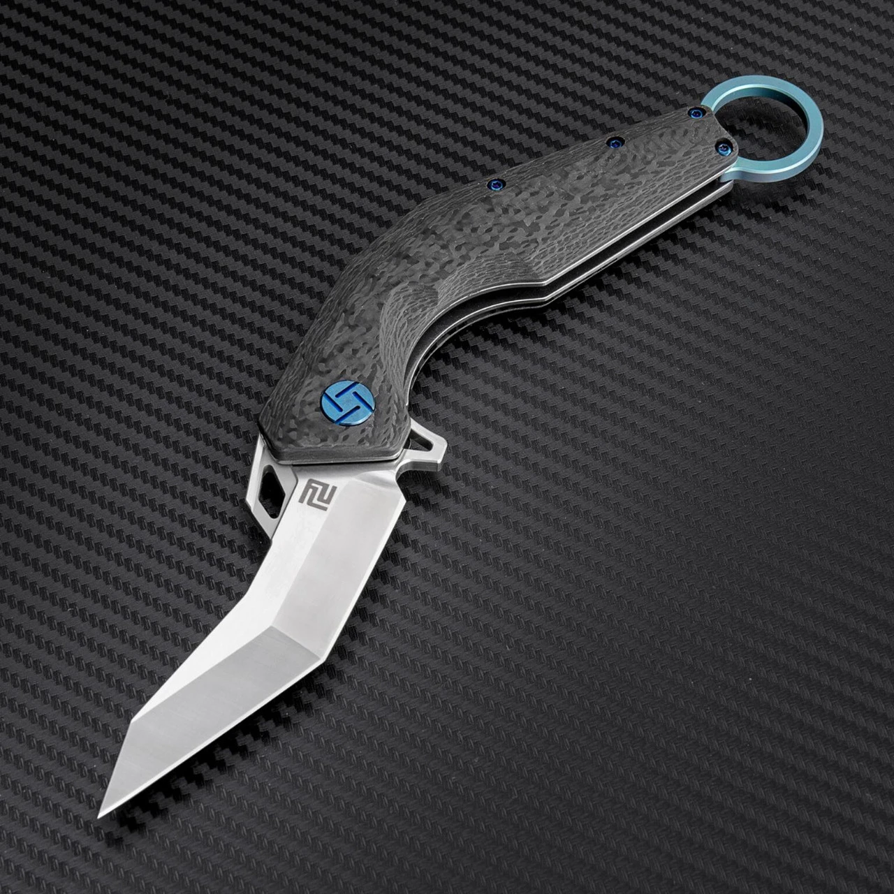 Artisan Cobra ATZ1811GGNM, 3.15″ M390 Plain Blade, Green Carbon Fiber Handle