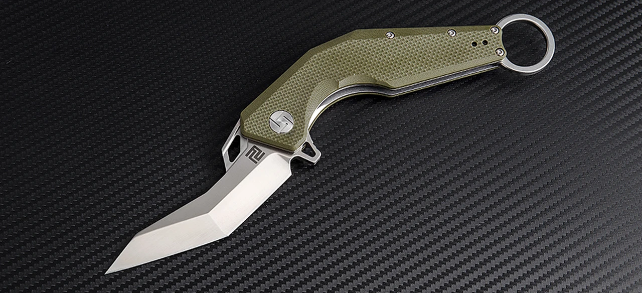 Artisan Cobra ATZ1811PGNF, 3″ D2 Plain Blade, Flat Green G-10 Handle