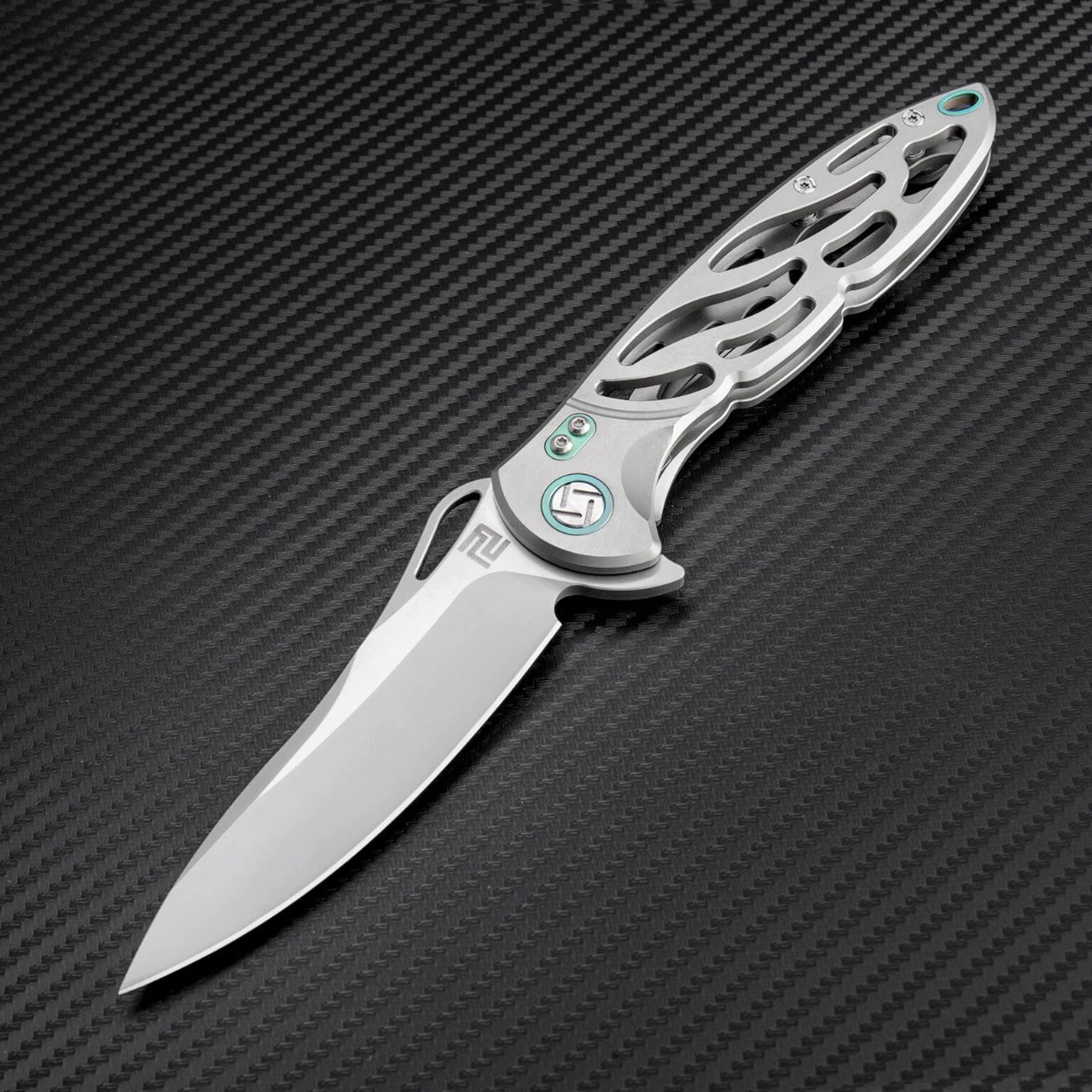 Artisan Dragonfly ATZ1801GGYM, 3.94″ M390 Plain Blade, Gray TC4 Titanium Handle