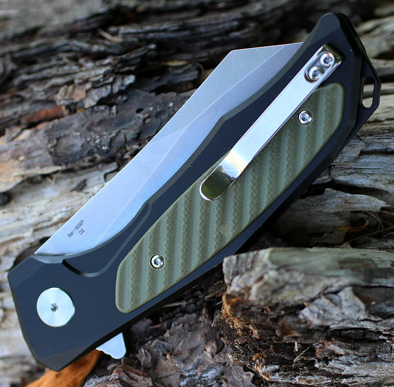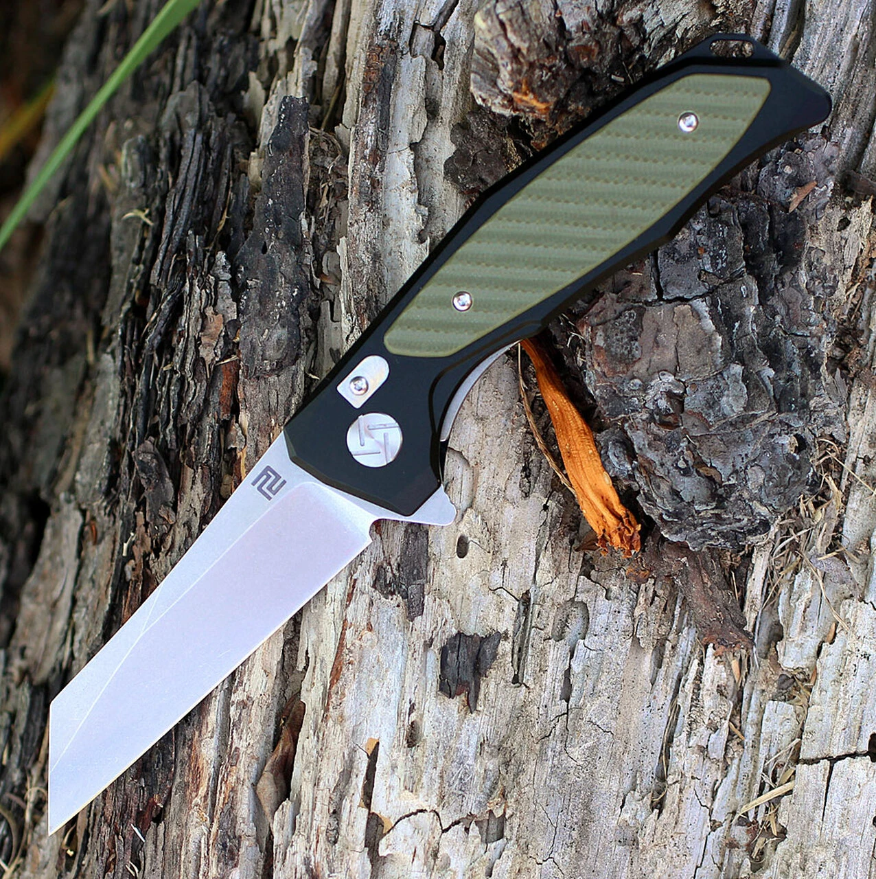 Artisan Falcon ATZ1809PBGN, 3.94″ D2 Plain Blade, Green/Black Aluminum/G-10 Handle