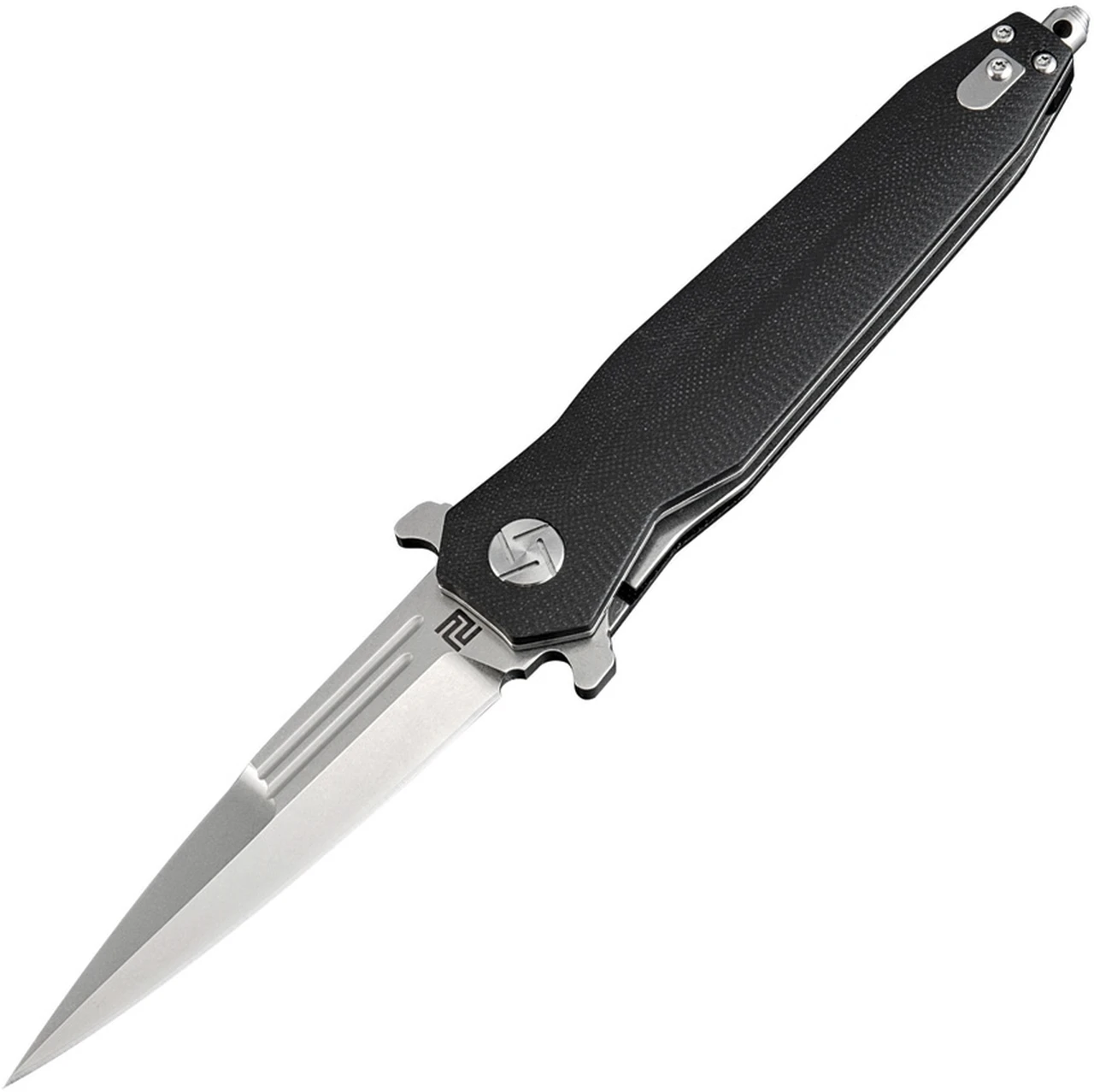 Artisan Hornet ATZ1810PBKC, 3.54″ D2 Steel Satin Blade, Black Smooth G10 Handle