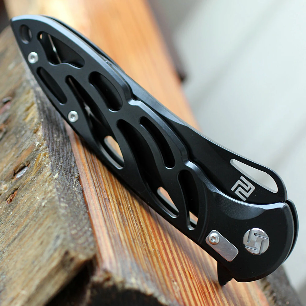The Artisan Cutlery Hoverwing is a sturdy and stylish flipper that is great for everyday use. Its ergonomic handle and thumb slot allow it to fit comfortably in the hand. The 3.94″ drop point blade is crafted from D2 tool steel.