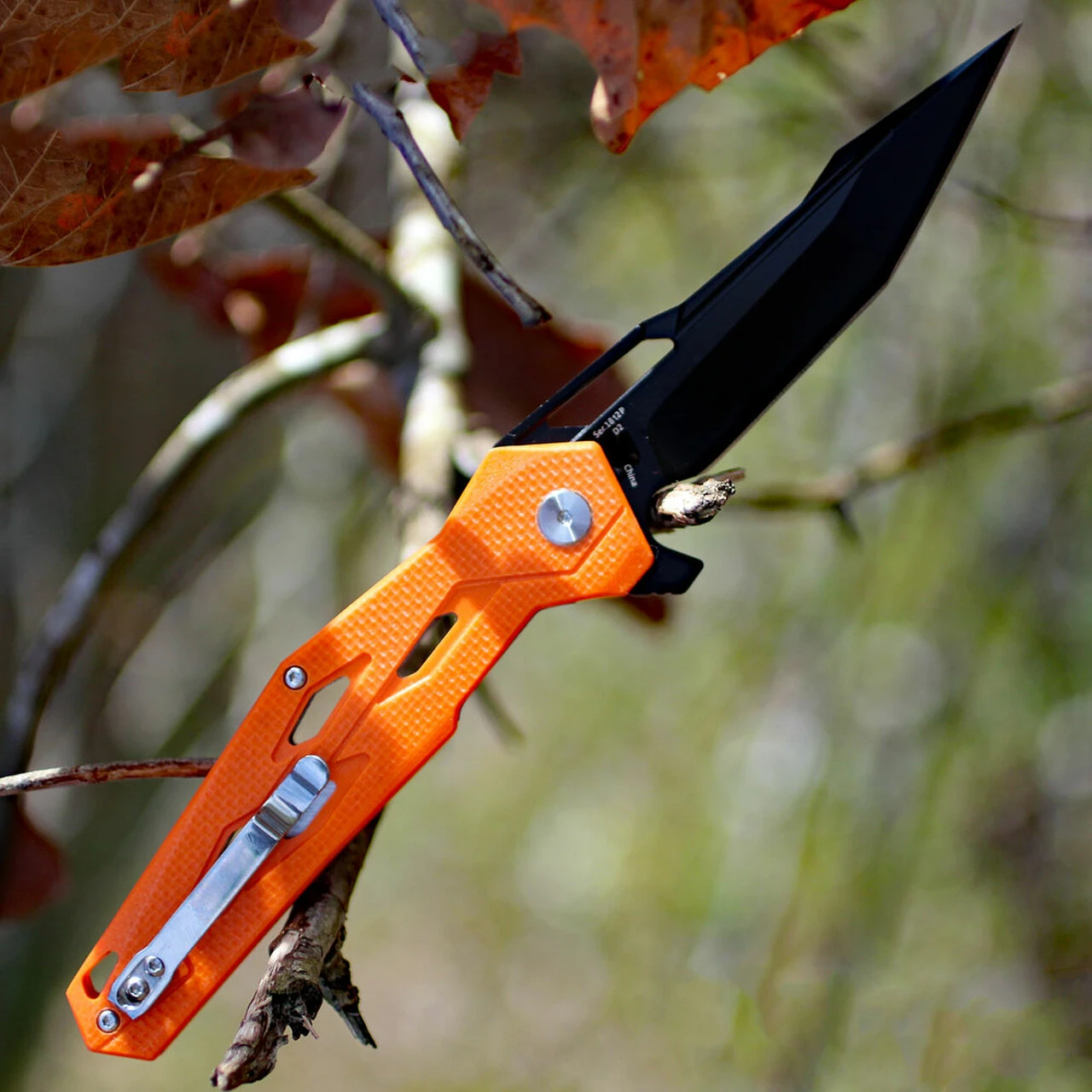 Artisan Interceptor ATZ1812PBOE, 3.54″ D2 Black Tanto Blade, Orange G10 Handle