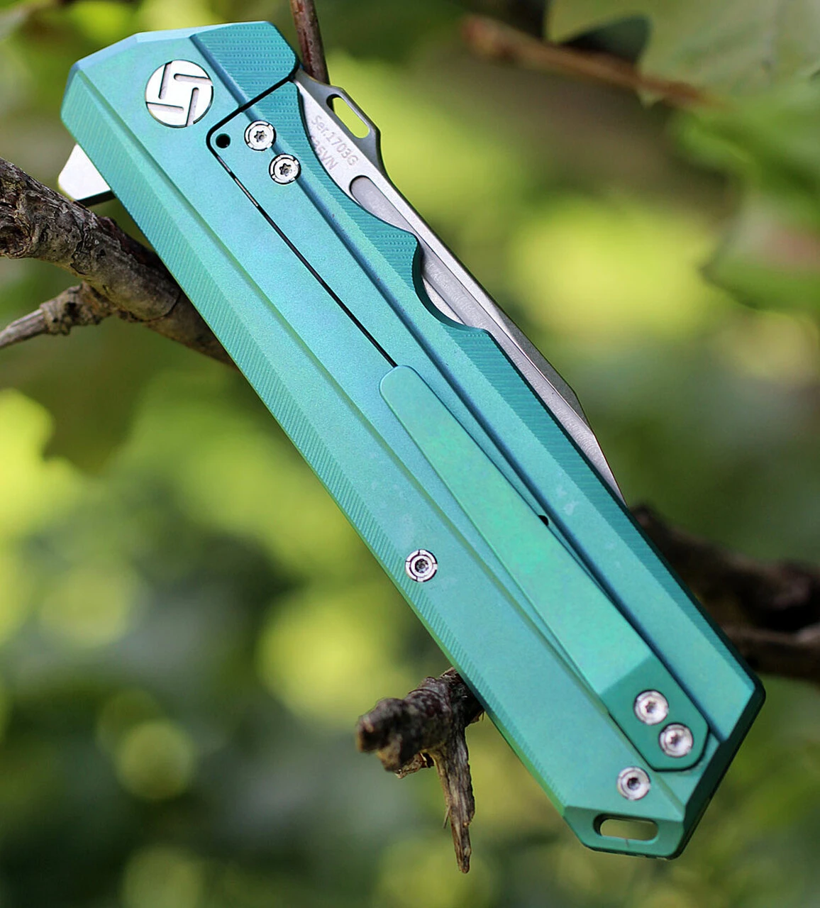 Artisan Littoral ATZ1703GGN, 3.54 in. S35VN Plain Blade, Green Titanium Handle