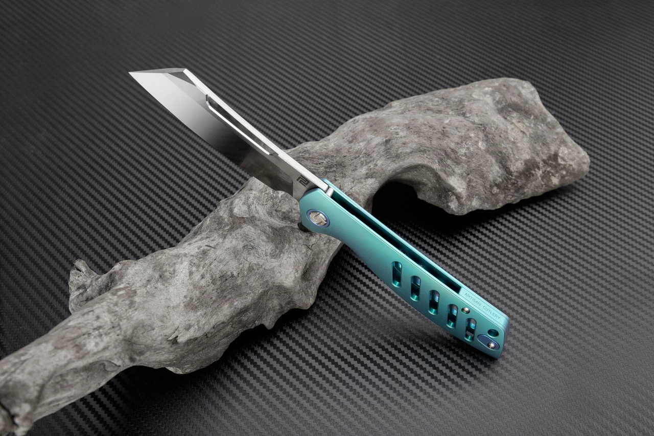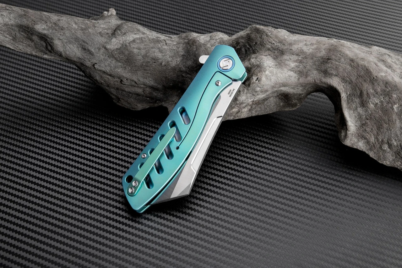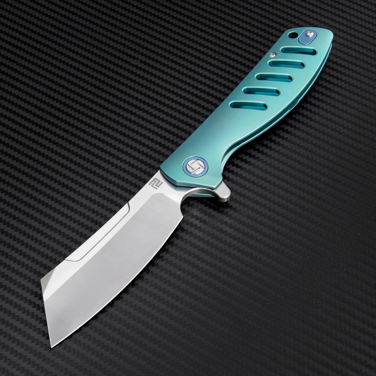 Artisan Tomahawk ATZ1815GGNM, 3.75″ M390 Plain Blade, Green Titanium Handle