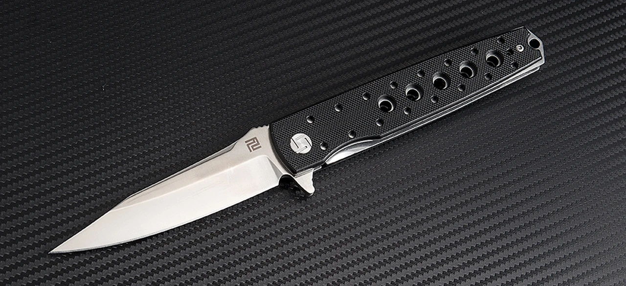 Artisan Virginia ATZ1807PBKF, 3.94″ D2 Plain Blade, Flat Black G-10 Handle