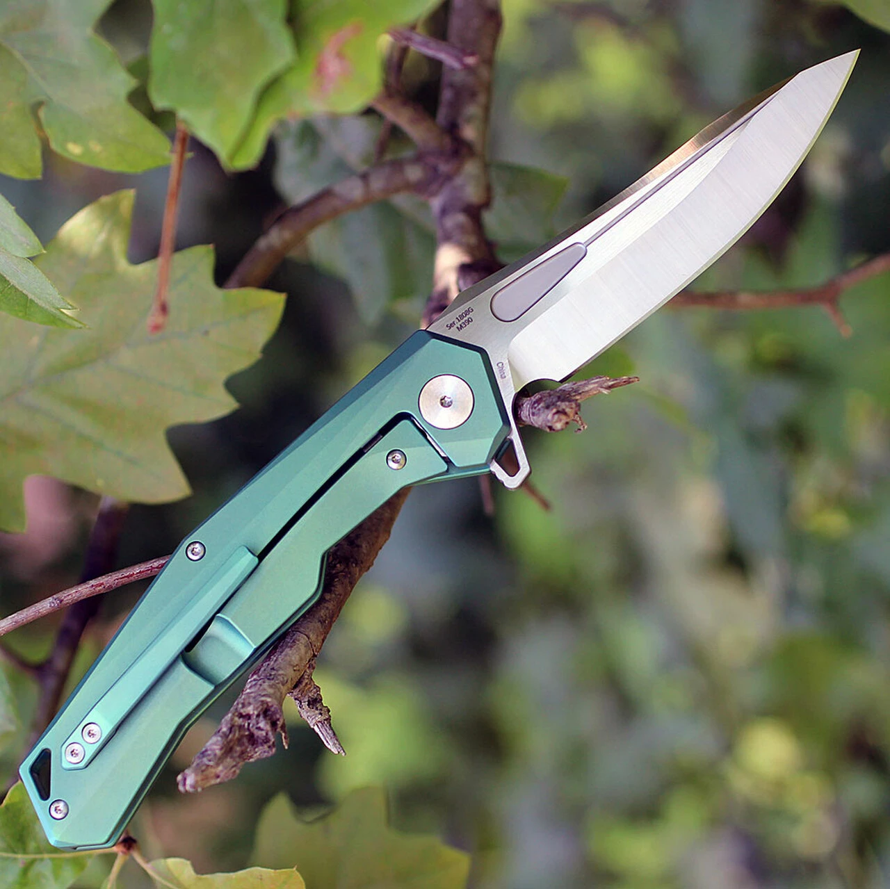 Artisan Zumwalt ATZ1808GGNM, 3.78″ M390 Plain Blade, Green Titanium Handle