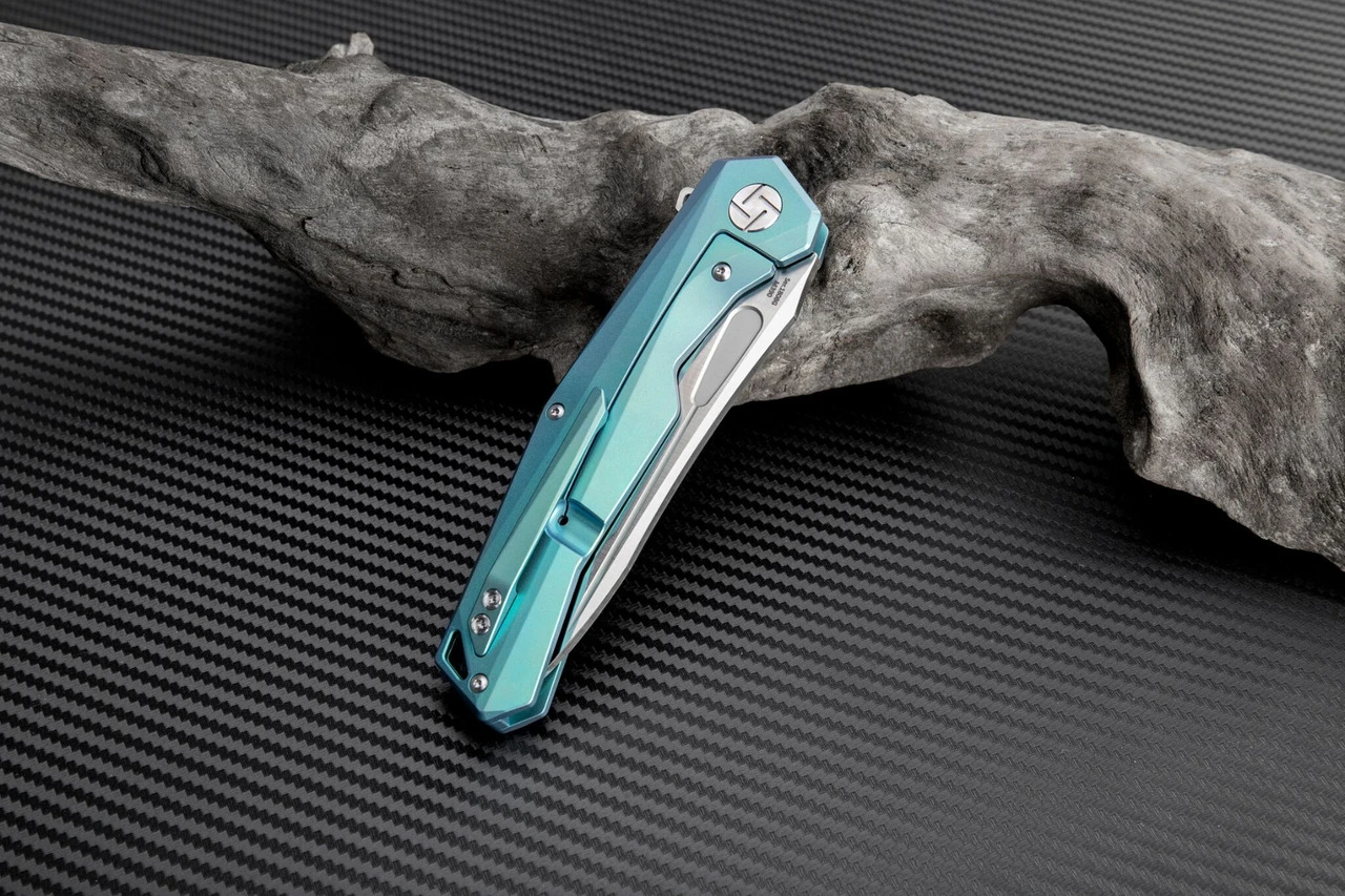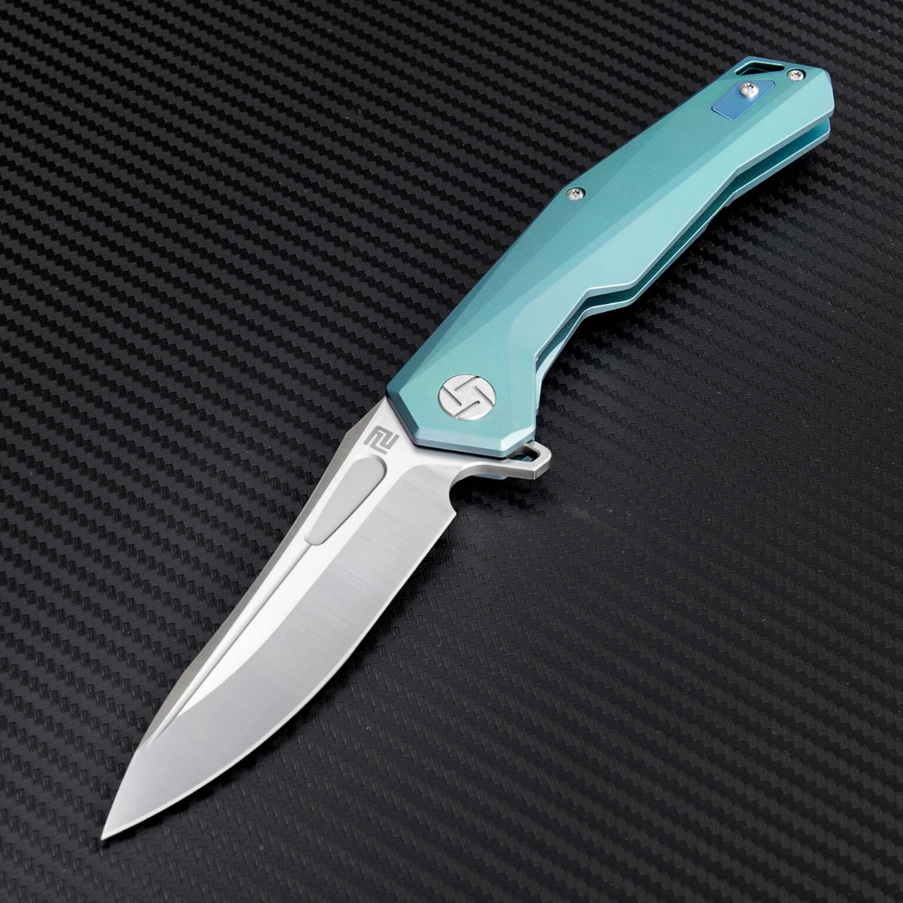 Artisan Zumwalt ATZ1808GGNS, 3.78″ S35VN Plain Blade, Green Titanium Handle