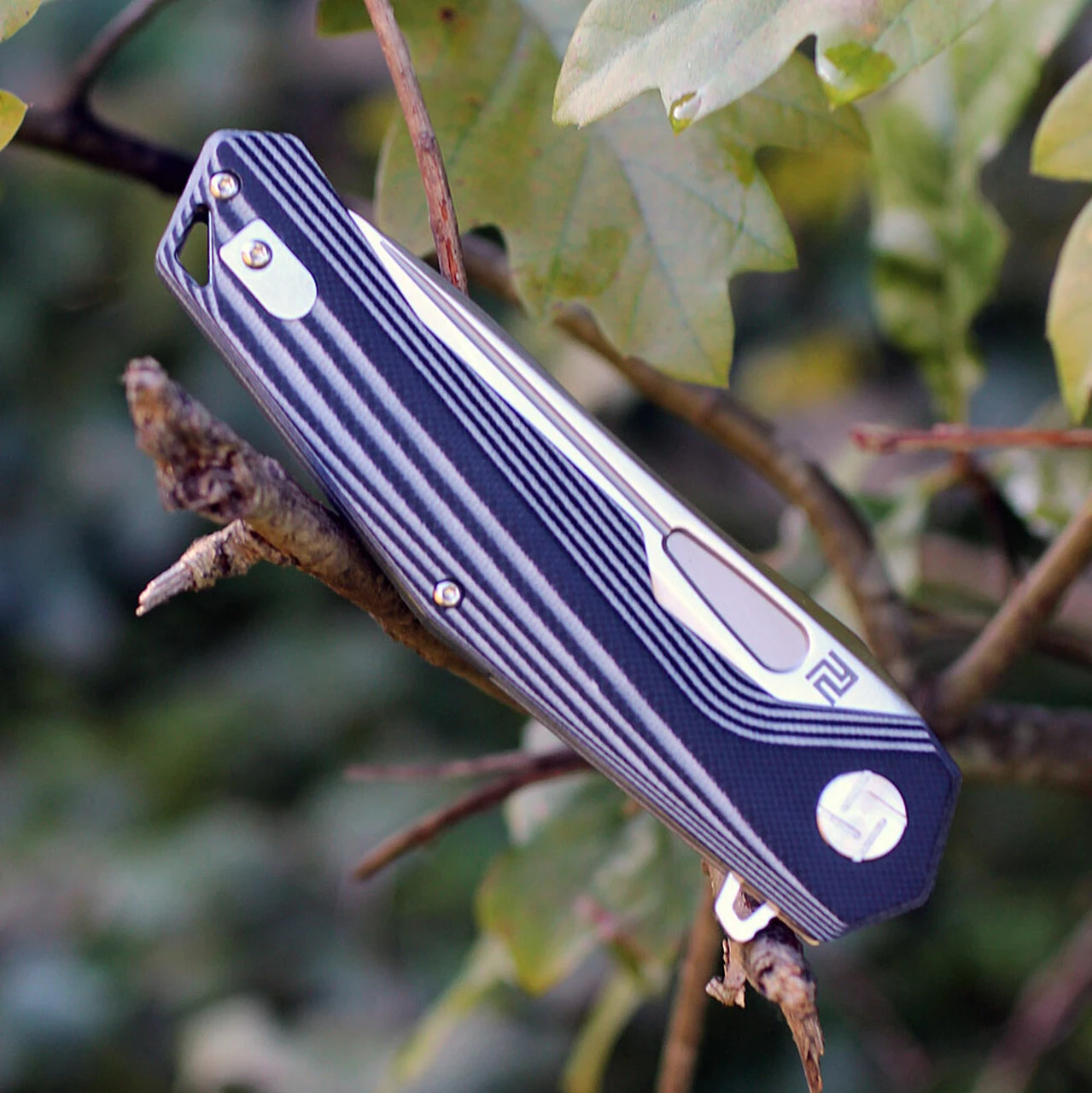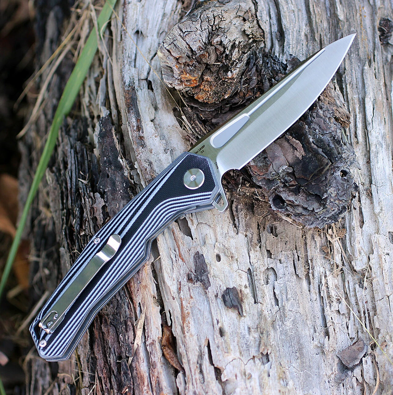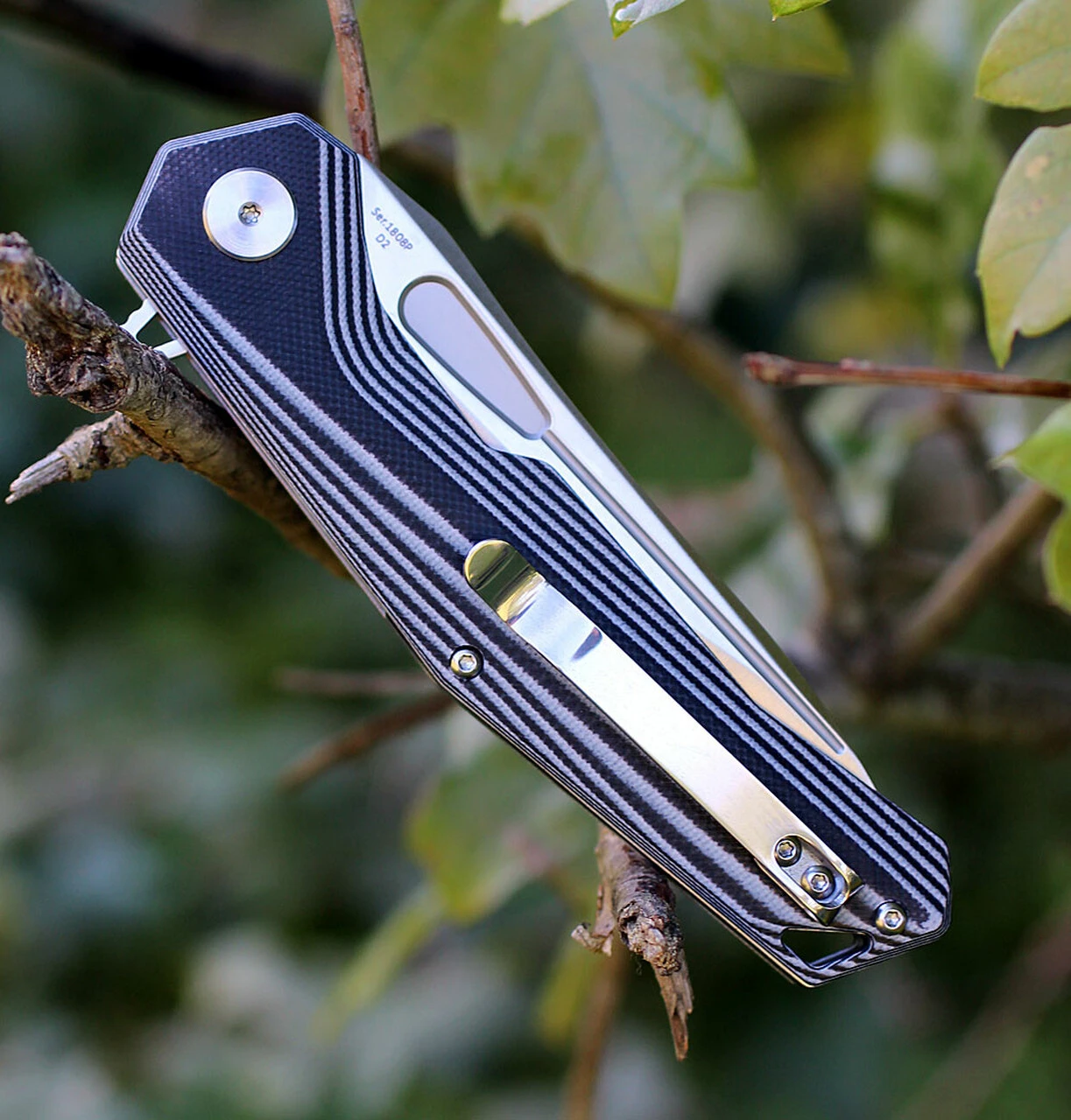 Artisan Zumwalt ATZ1808PBGC, 3.94″ D2 Plain Blade, Curved Black/White G-10 Handle
