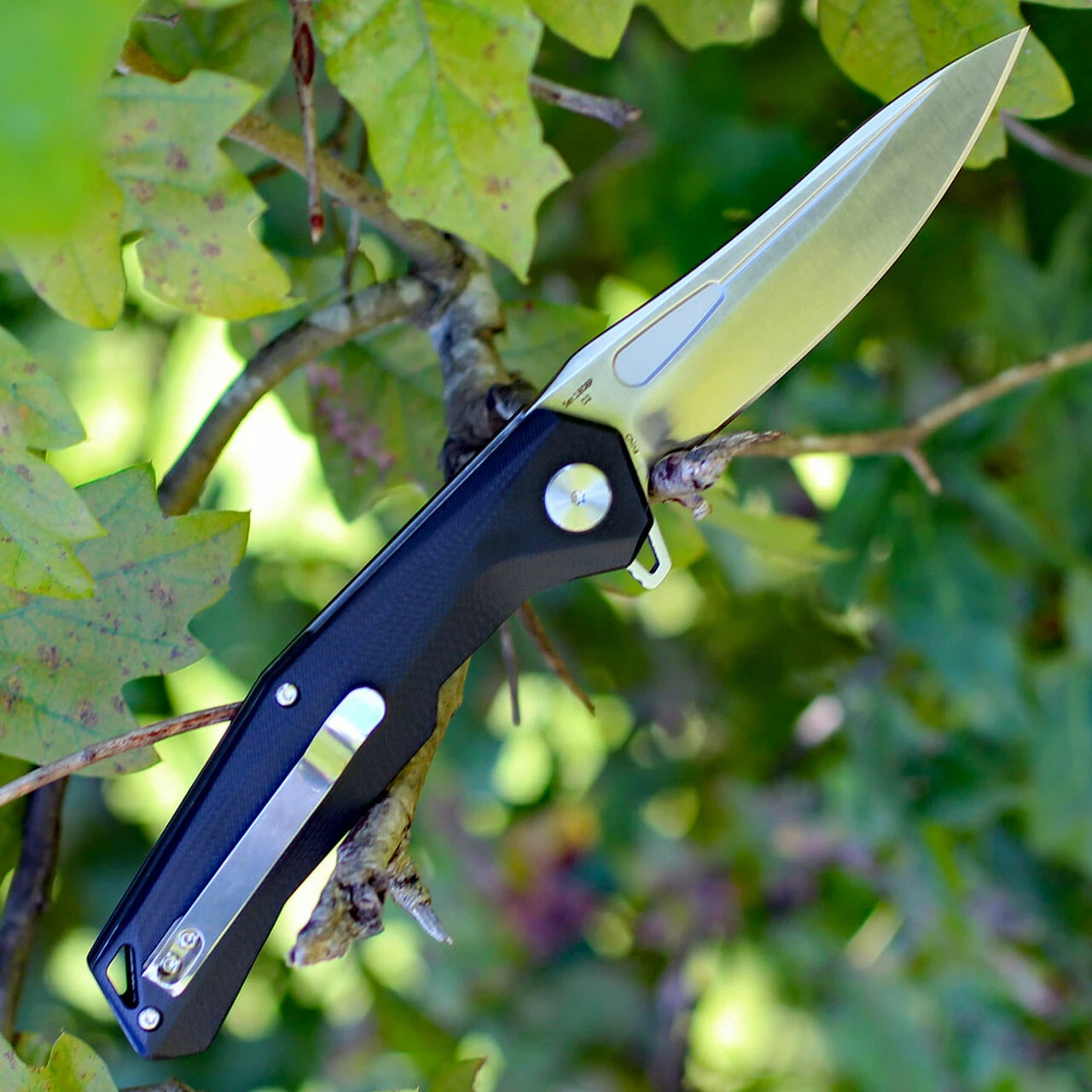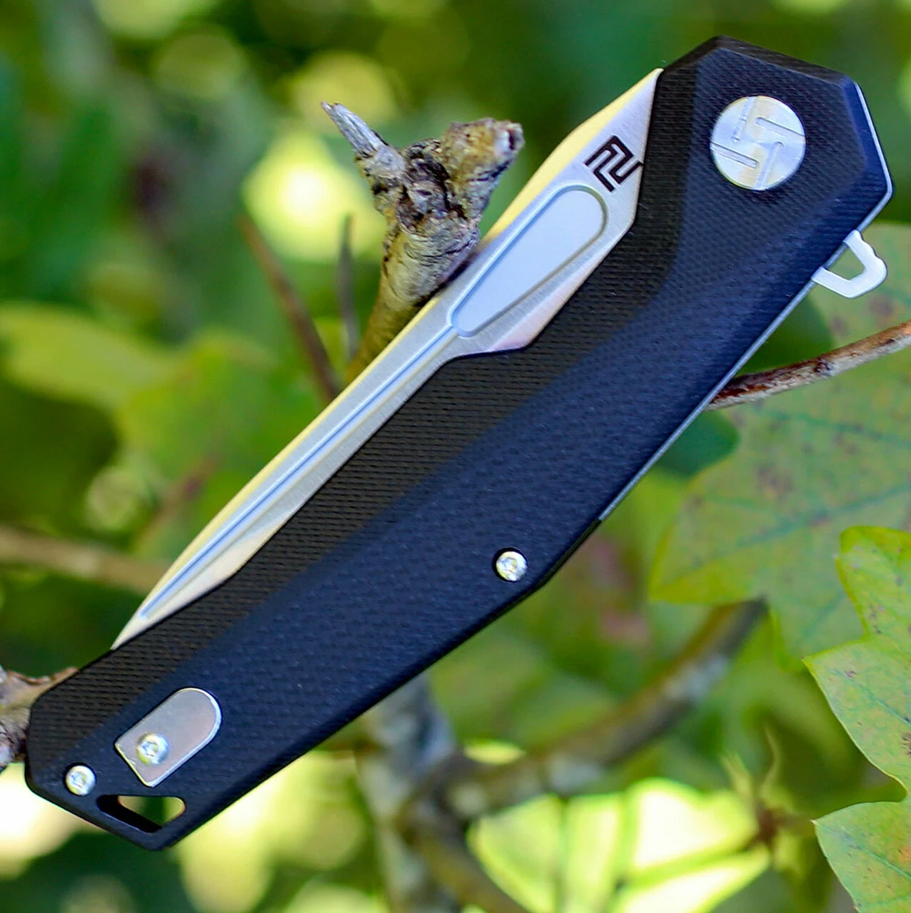 Artisan Zumwalt ATZ1808PBKC, 3.94″ D2 Plain Blade, Curved Black G-10 Handle