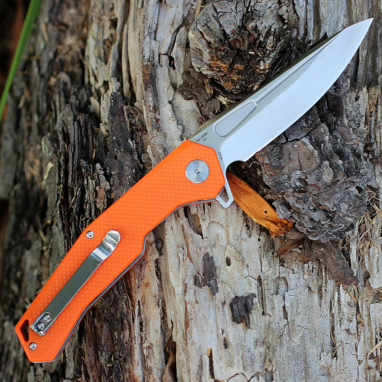 Artisan Zumwalt ATZ1808POEF, 3.94″ D2 Plain Blade, Flat Orange G-10 Handle