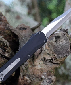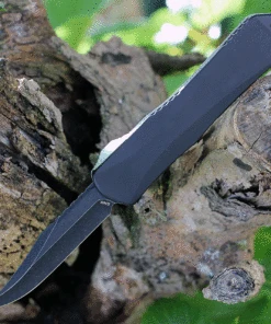 Heretic Knives Heretic Manticore S OTF Auto – Black Alum. (2.62″ Elmax Bowie Battleworn) HO22B-5A