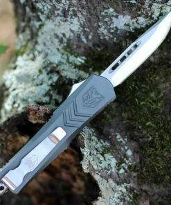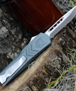 CobraTec Gray FS-X OTF Knife CTKSGRYFS-XSDNS, 2.75″ D2 Steel Drop Point Blade, Gray Aluminum Handle