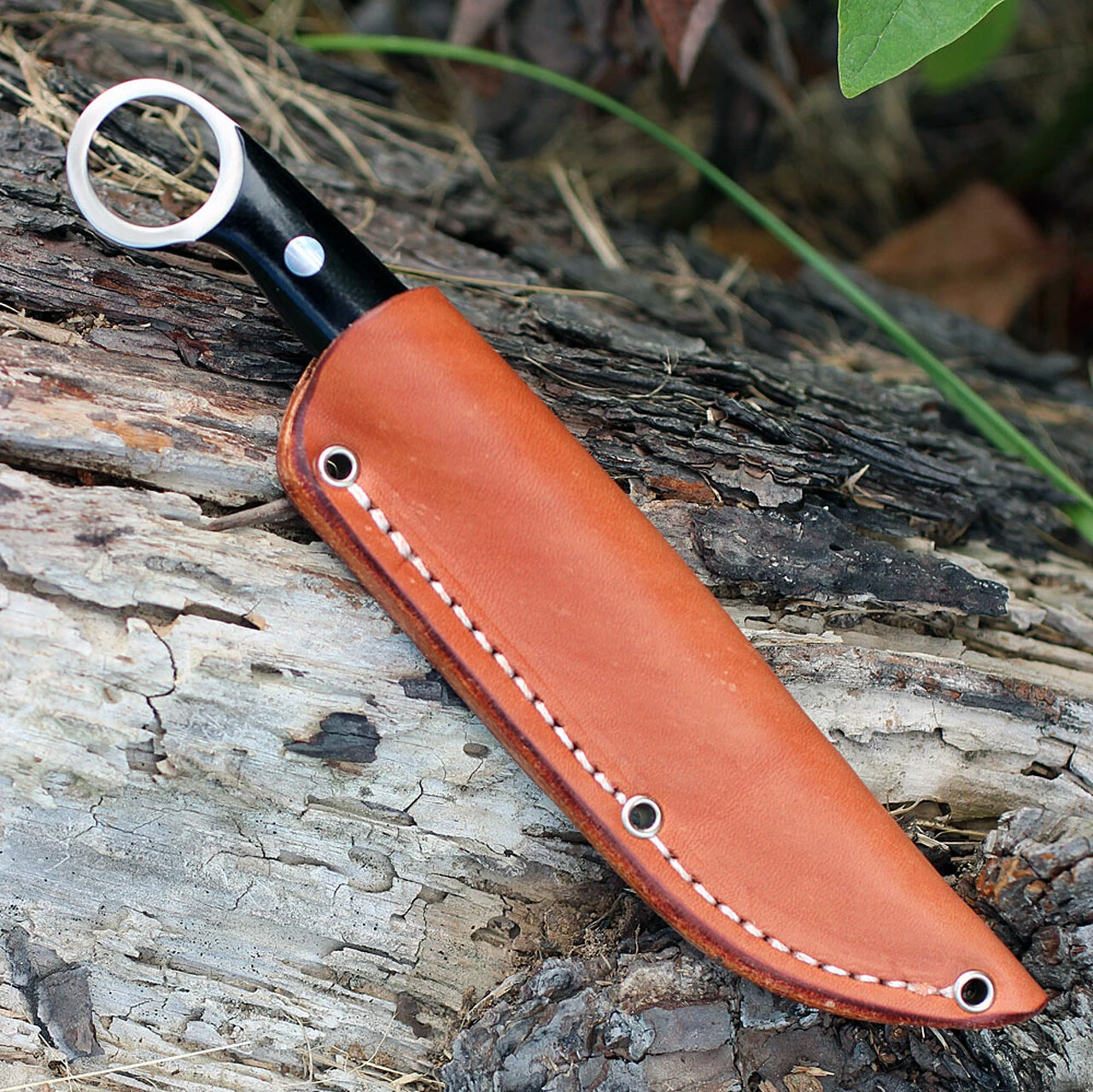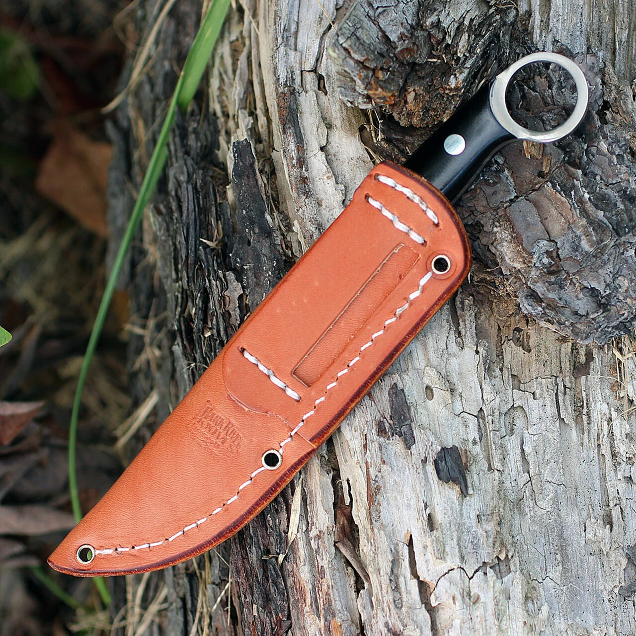 The Bark River Donnybrook is a comfortable EDC utility knife with a pinky ring allowing for a more tactical application if the need arises. The blade is made from CPM-154 stainless steel, which is a steel preferred by many custom knifemakers for its great all-around characteristics. The contoured Micarta handles create no hot-spots in the hand, meaning you can use this knife for prolonged periods without suffering from hand fatigue. The knife includes a leather drop sheath and was proudly made in the USA.