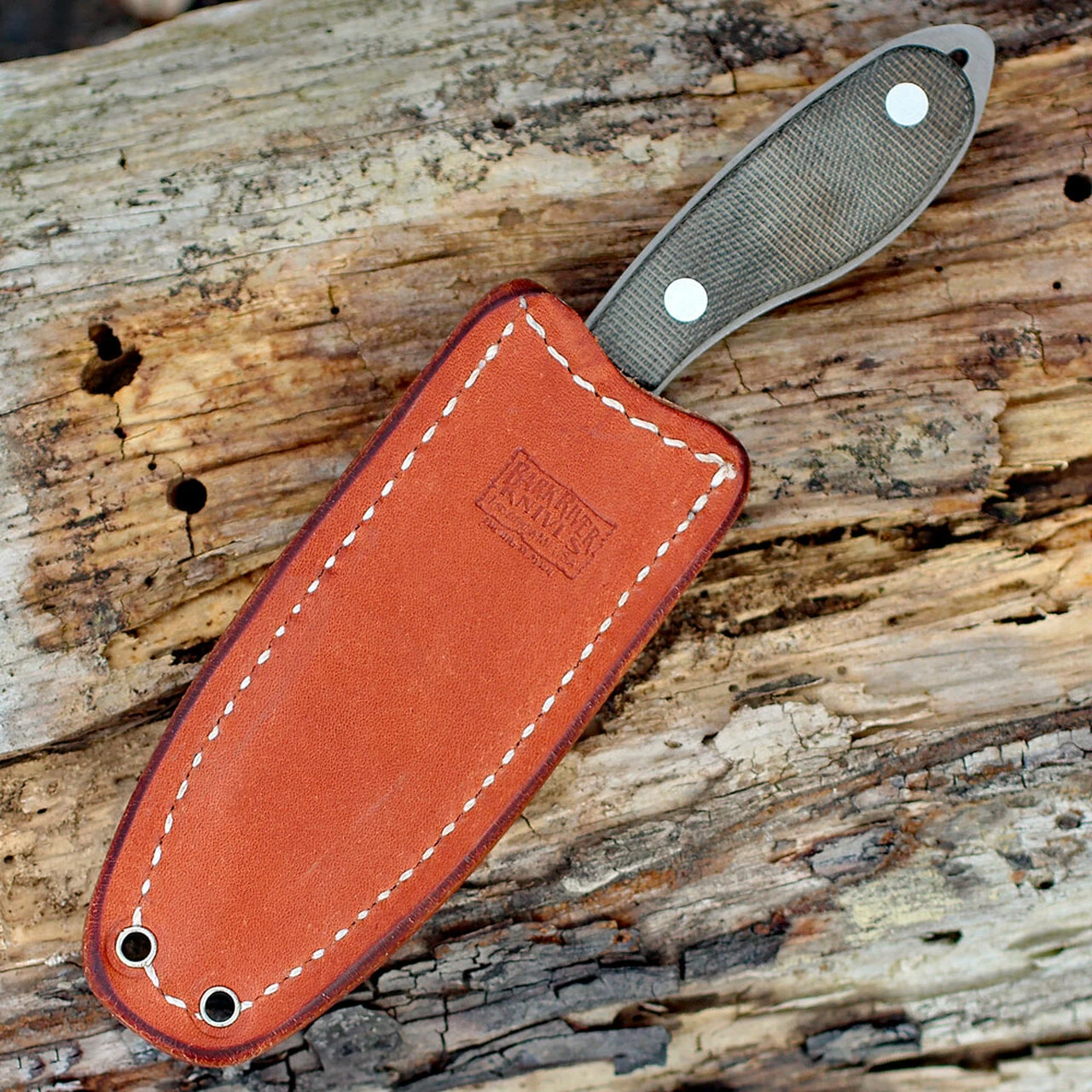 The Bark River Knives Caper Necker is designed to be compact, a great cutter, and comfortable in the hand. The knife is feather light and performs very well for heavier cutting tasks when necessary. You will find that the CPM-20CV powdered metal technology stainless steel is extremely fine grained and will take and hold a razor-sharp edge. It adds to the versatility of their growing hunting knife line with all the benefits of an ultra-modern powdered metal technology steel. The leather sheath with its rare earth retention can be suspended from a ball-chain for safe and dependable carry.
