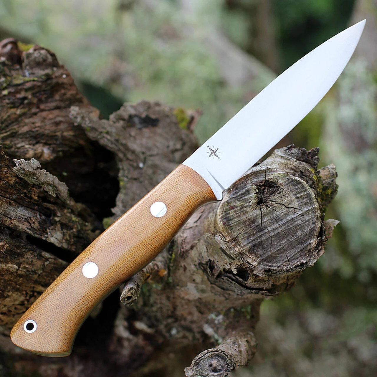 Bark River Aurora Fixed Blade Knife (06-115M-NC) – 4.75″ A2 Satin Drop Point Blade, Natural Canvas Micarta Handle