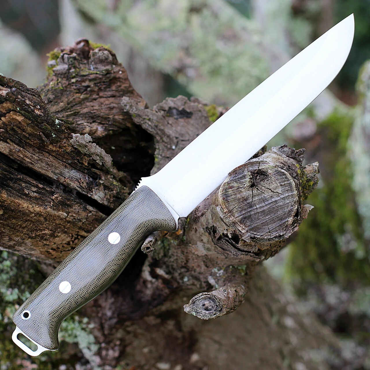 Bark River Bravo 2 Fixed Blade (07-211M-GC) – 7″ A2 Satin Drop Point Blade, Green Canvas Micarta Handle