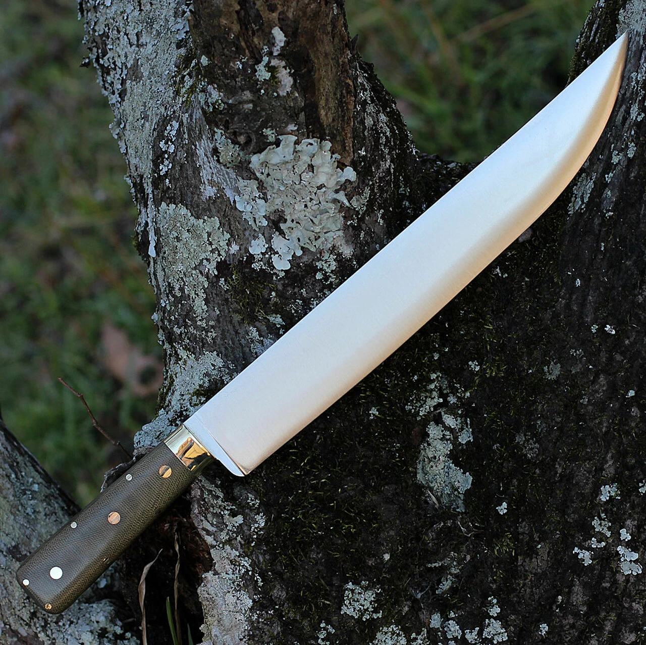 Bark River Edwin Forrest Bowie Fixed Blade (08-315M-GC) – 12.25″ A2 Satin Blade, Brass Bolsters with Brown Leather Belt Sheath