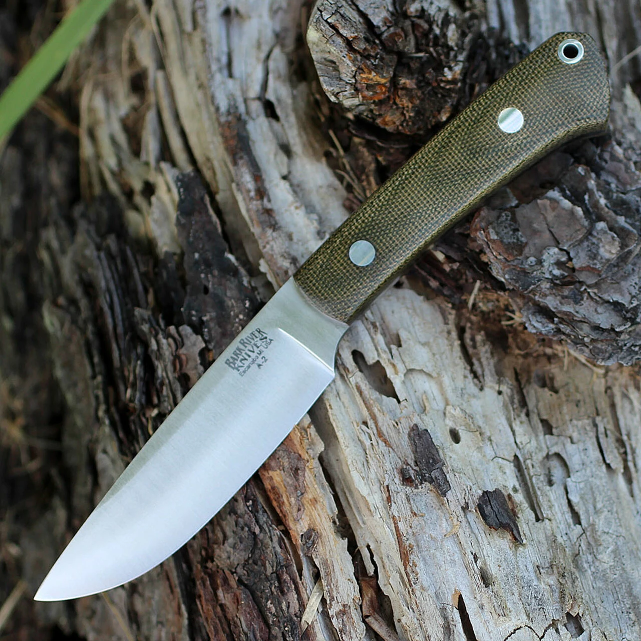Bark River Highland Special 01-114M-GC, 3.875″ A2 Steel, Green Canvas Micarta Handle