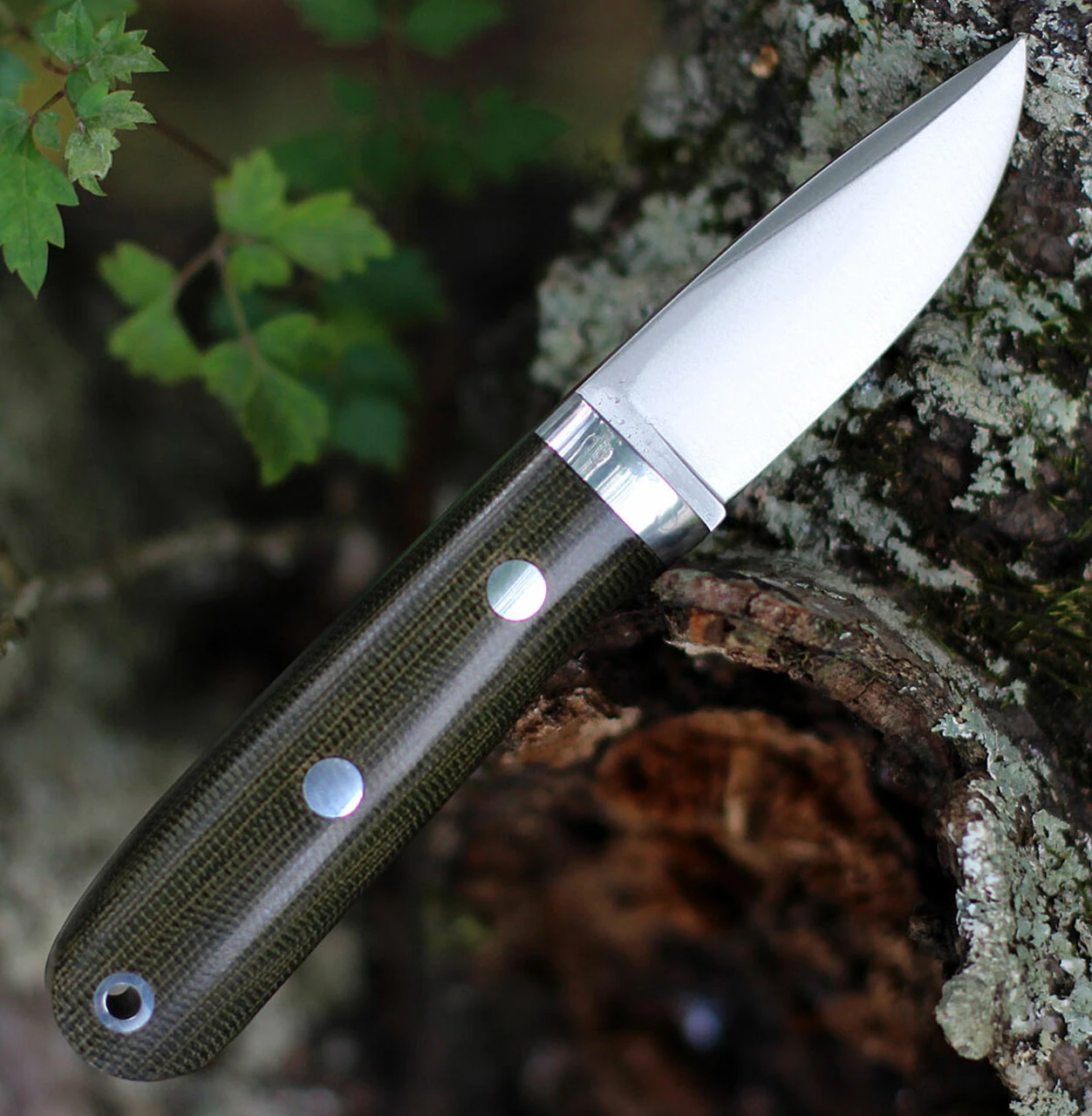 Helle Spire Fixed Blade – Birch Wood (2.5″ Sandvik 12C27 Blunt Tip) Leather Sheath