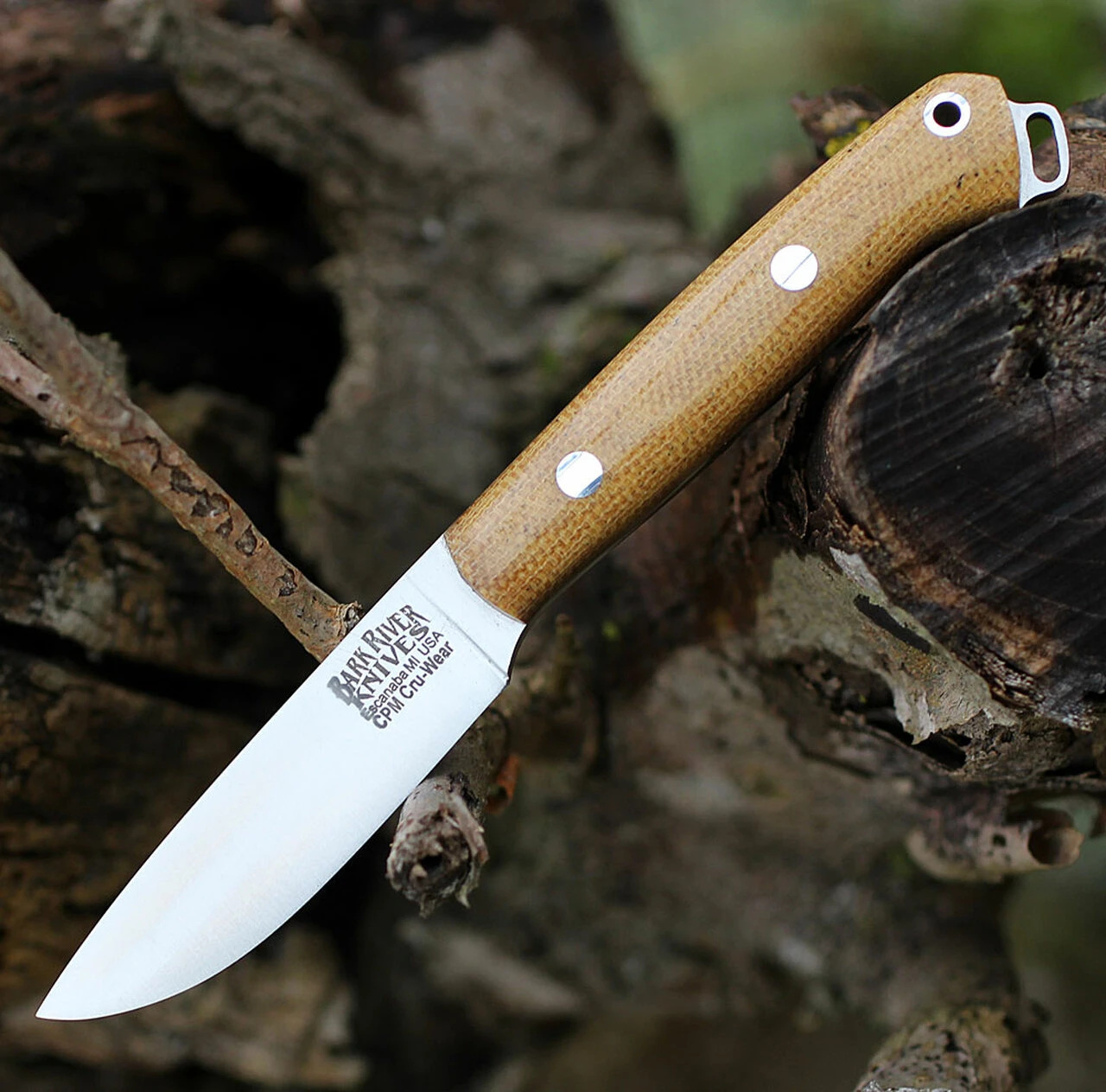 Bark River Knives Little Creek BA01061MNC, 2.5″ CPM CruWear Blade, Natural Canvas Micarta Handle