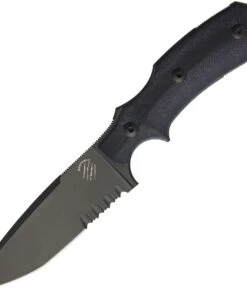 Bastinelli RED Fixed Blade (BGREDV2PVDS) – 4″ N690 Black Partially Serrated Drop Point Blade, Black G-10 Handle