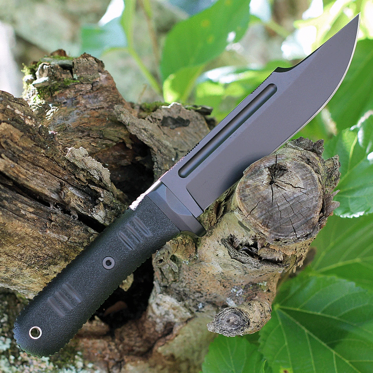 Bastinelli Creations Montana Fixed Blade BAS225, 6.5″ N690 Black Plain Blade, Black Kraton Handle, Black Kydex Sheath