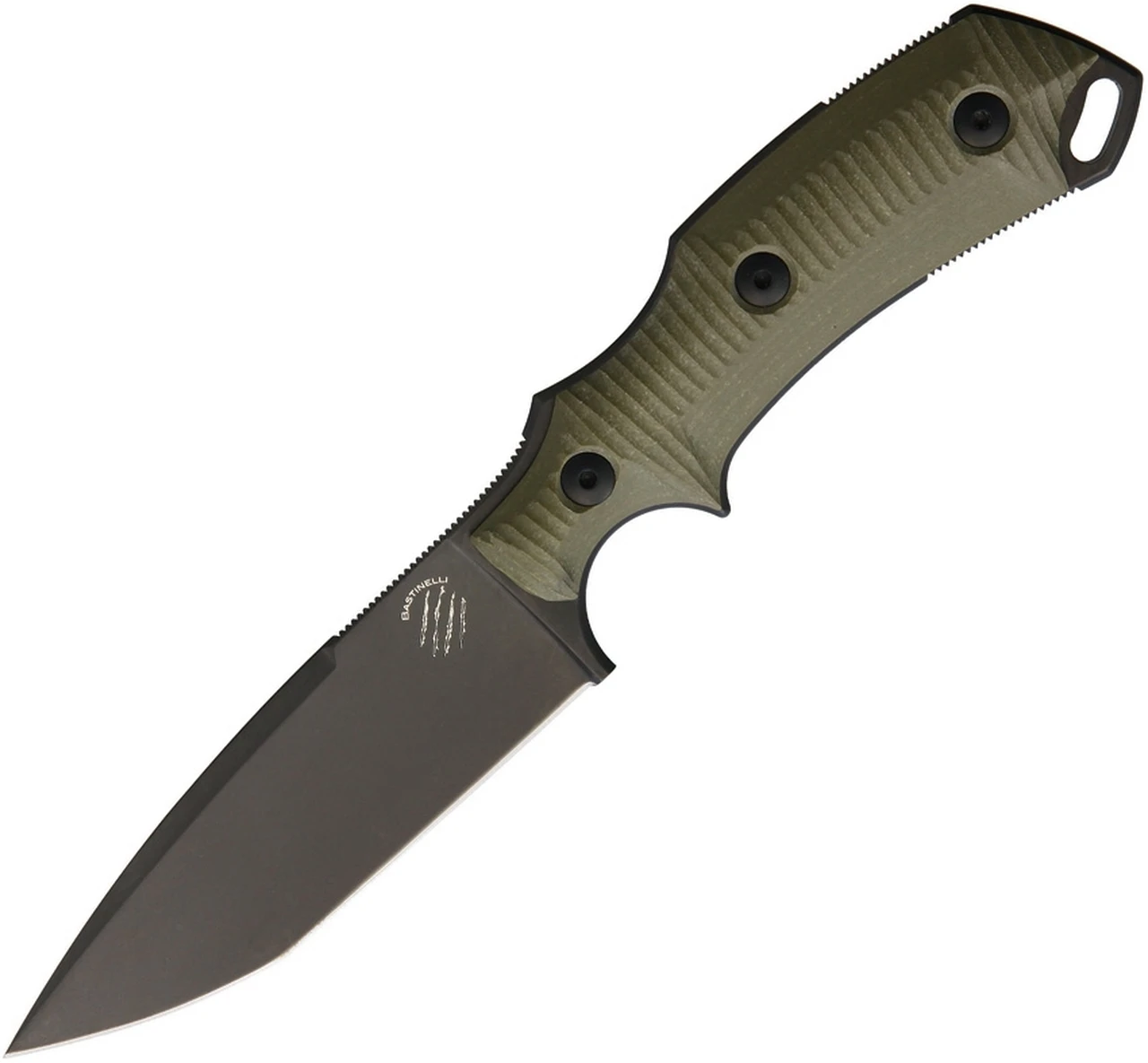 Bastinelli Creations R.E.D. Fixed Blade BAS04G, 4″ N690 Black Plain Blade, Green G-10 Handle, Black Kydex Sheath