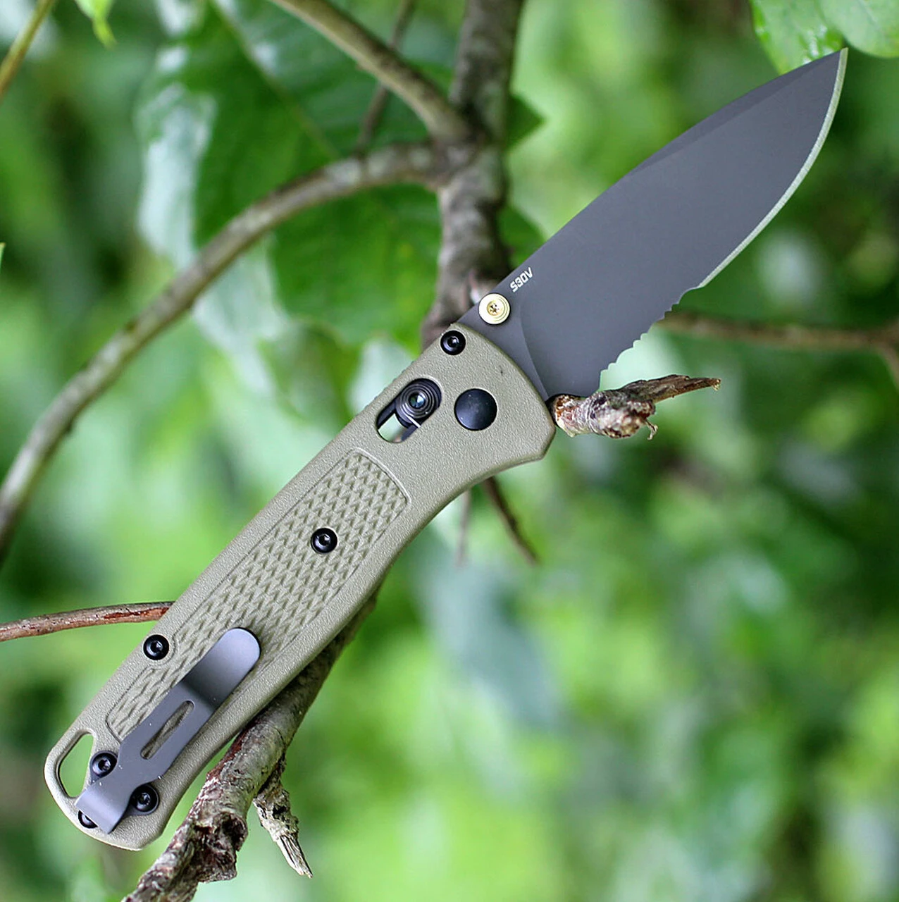 Benchmade 535SGRY-1 Bugout, 3.24″ CPM-S30V Part Serrated Gray Blade, Ranger Green Grivory Handle