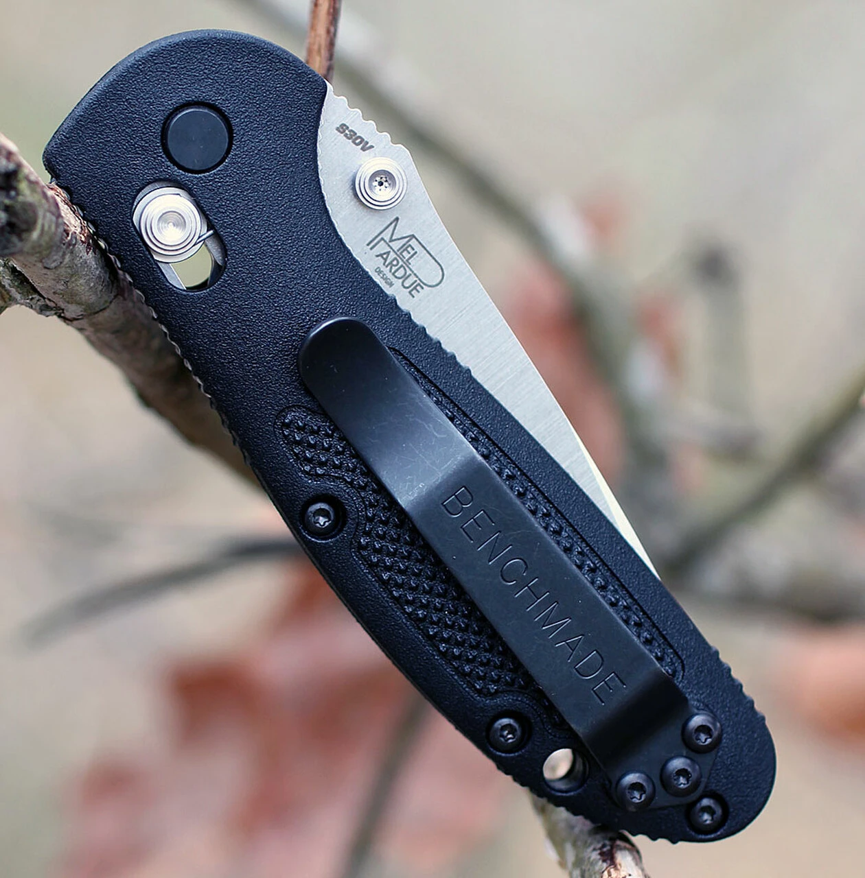 Benchmade Mini Griptilian 556S-S30V, 2.91″ S30V Drop Point Combo Blade, Black Noryl GTX Handle