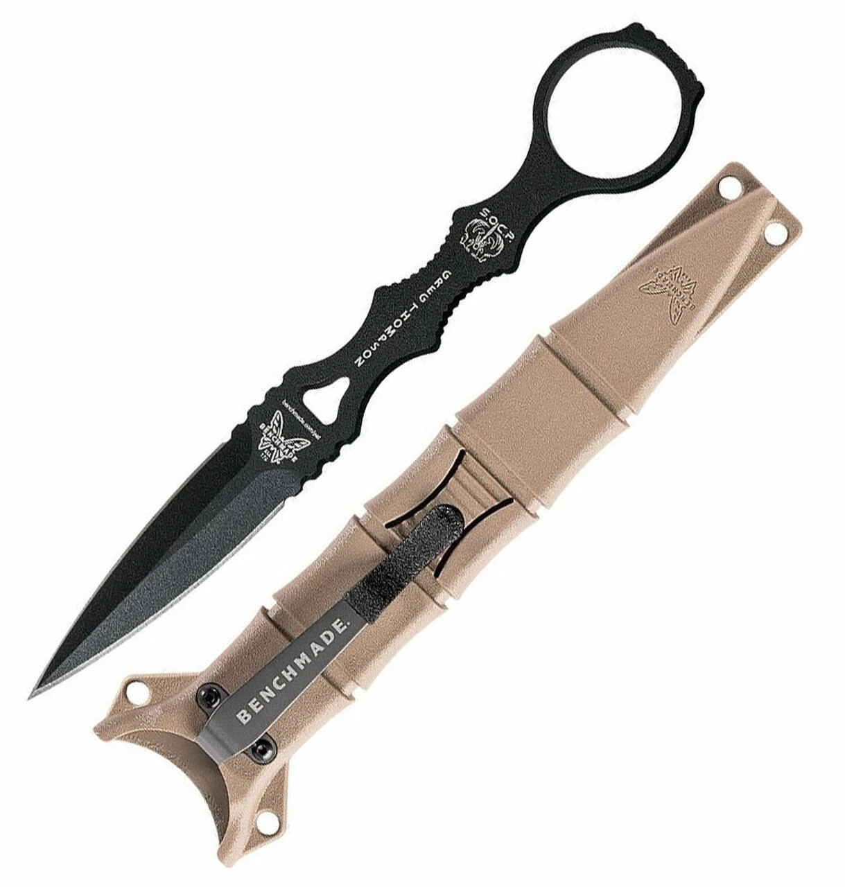 Benchmade SOCP Dagger, 176BKSN, 3.22 in. 440C Steel , Black Plain Blade, Desert Sand Sheath