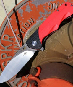 Bestech Airsteam Folding Knife (BG47C) – 3.9″ D2 Two Tone Satin & Gray Drop Point Blade, Red and Black G10 Handle