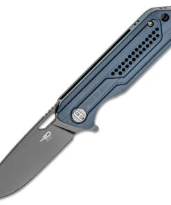 Bestech Knives Circuit BG35B-2, 3.25″ K110 Gray Titanium Coated Drop Point Blade, Blue (Gray) Milled G-10 Handle