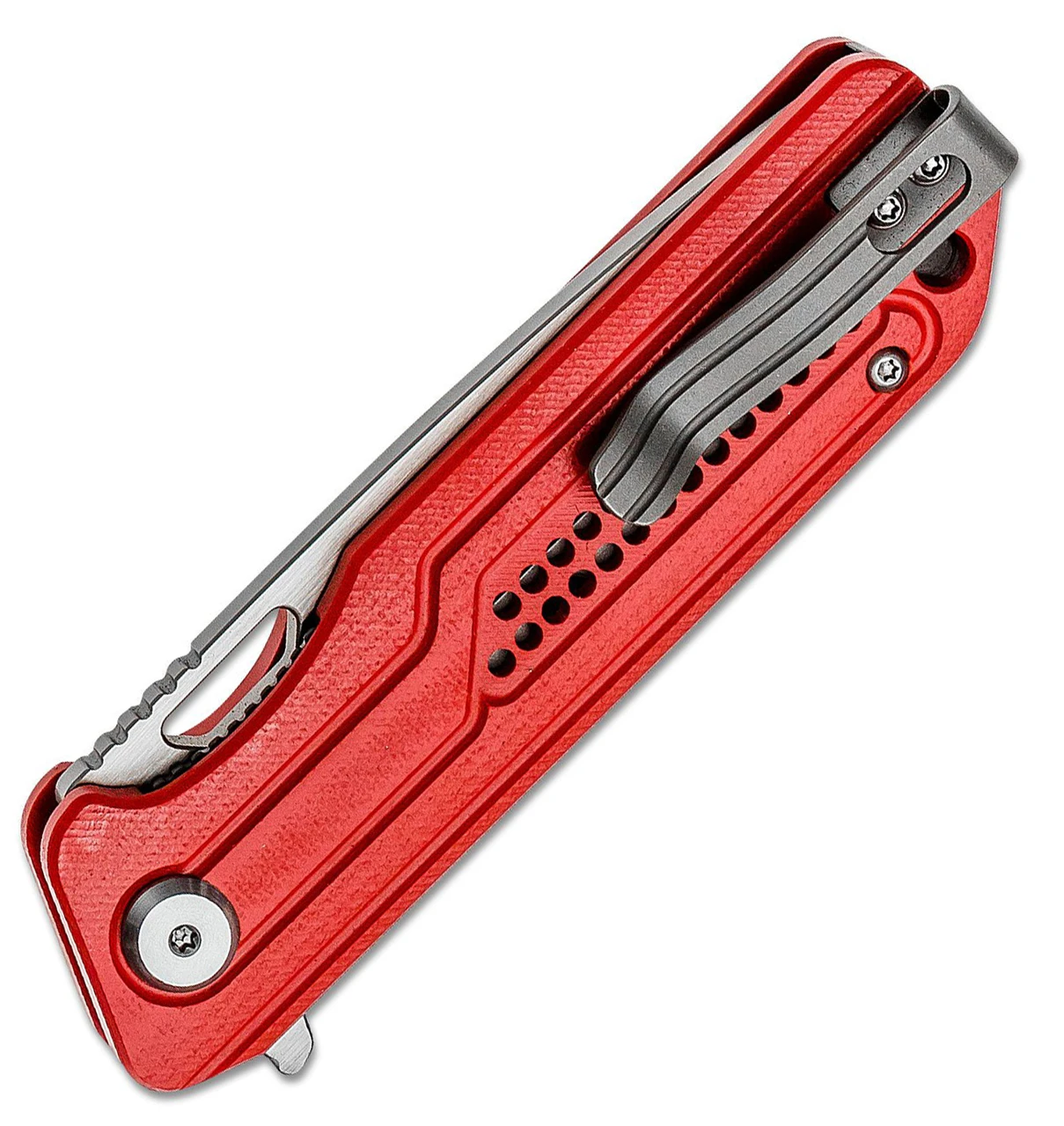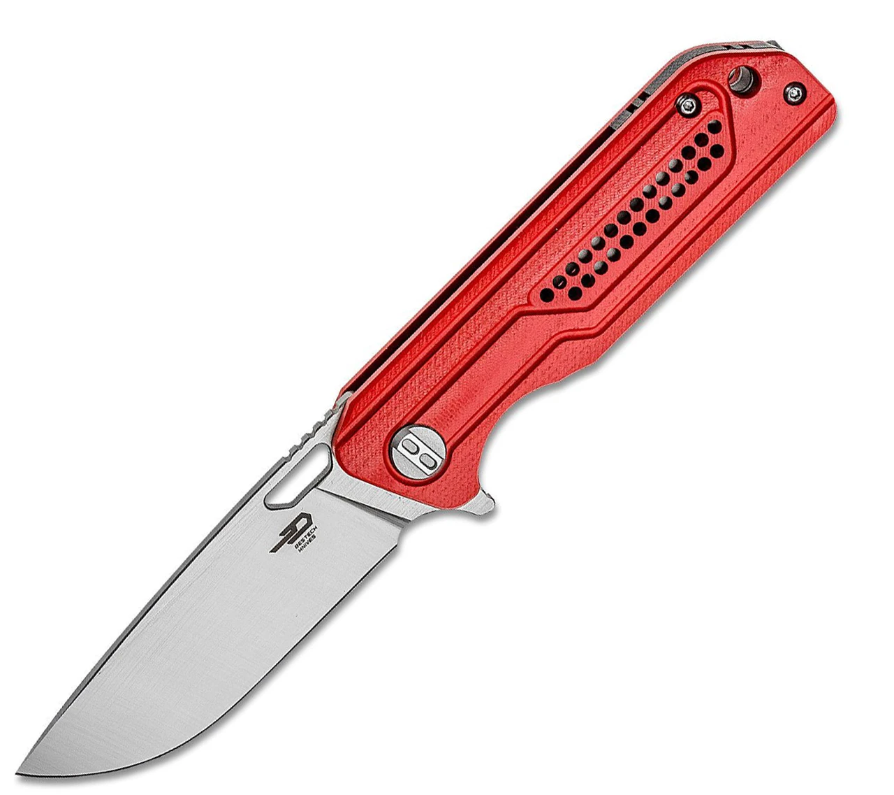 Bestech Knives Circuit BG35C-1, 3.25″ K110 Satin Drop Point Blade, Red Milled G-10 Handle