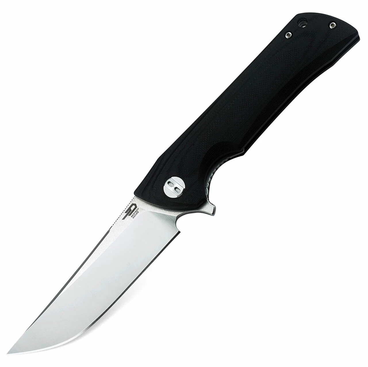 Bestech Paladin BG13A-1, 3.54″ D2 Steel Stonewash Plain Blade, Black G-10 Handle