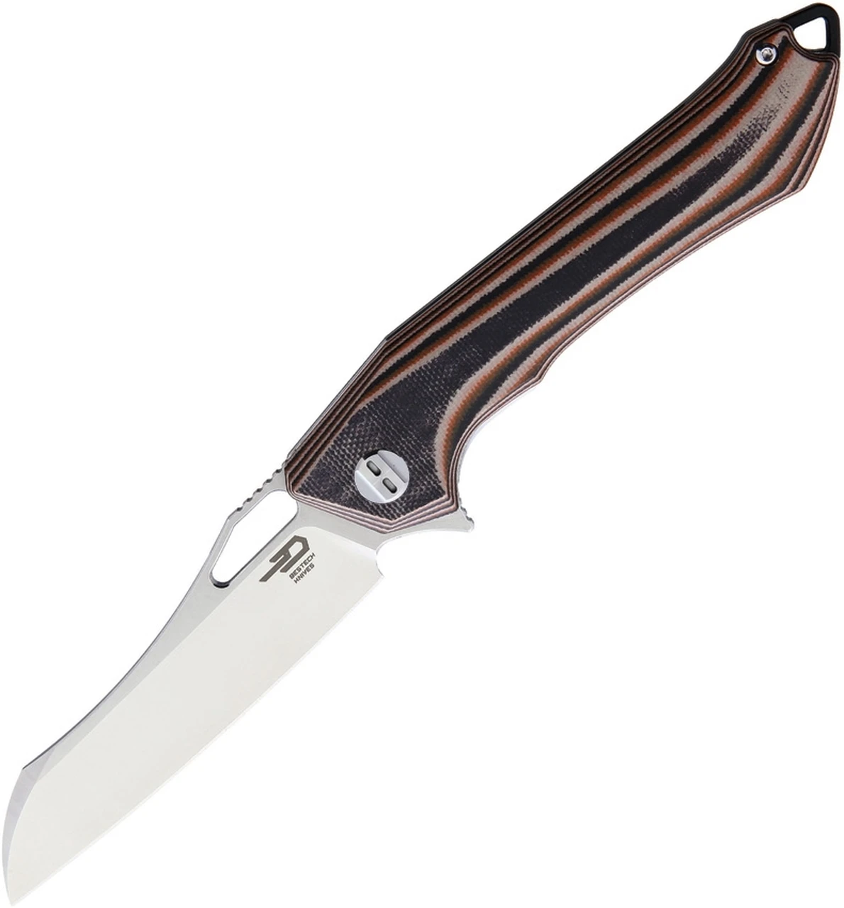 Bestech Platypus BG28C Flipper Knife, 3.43″ D2 Two-Tone Sheepsfoot Blade, Milled Beige, Orange & Black G-10 Handle