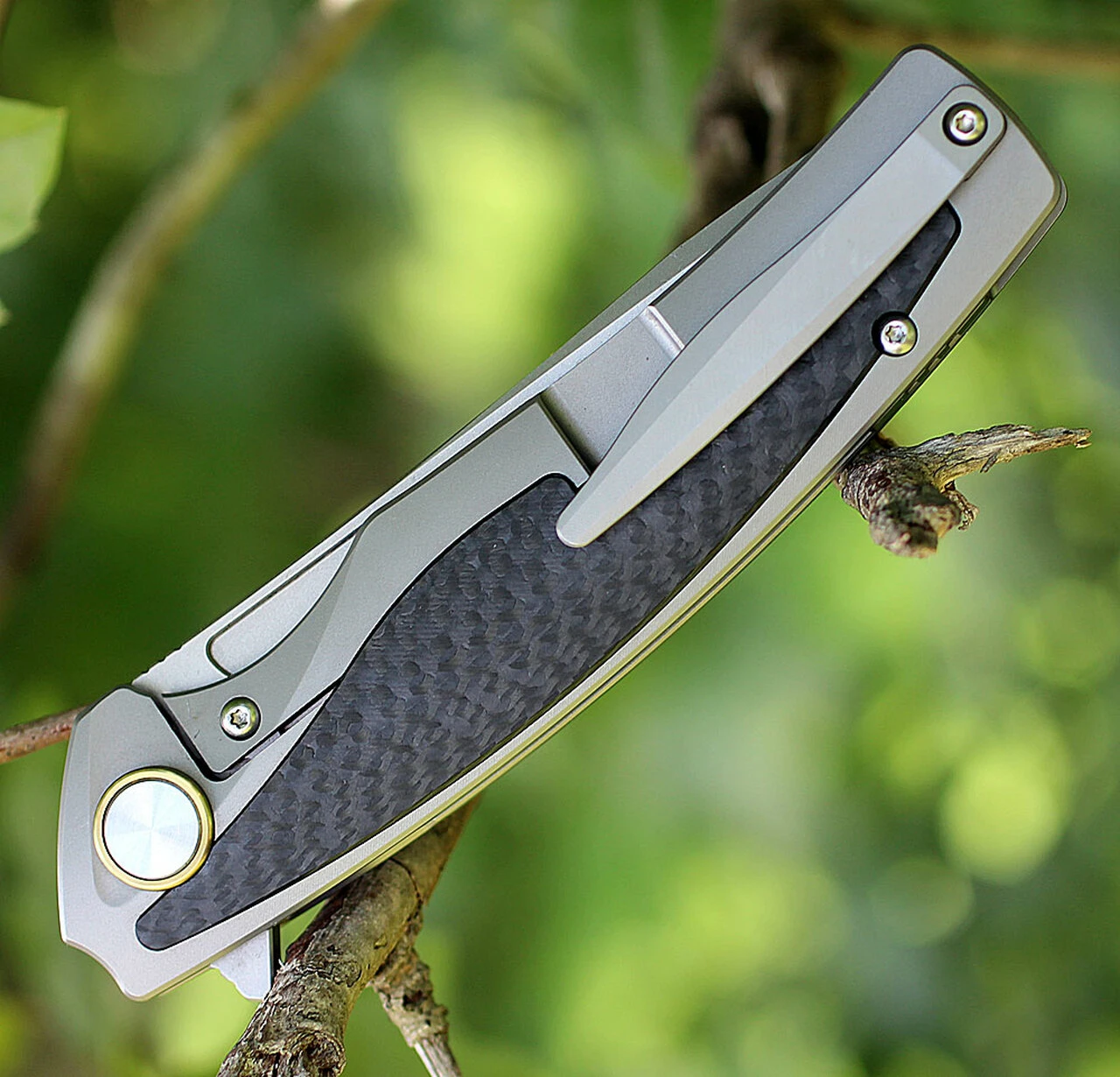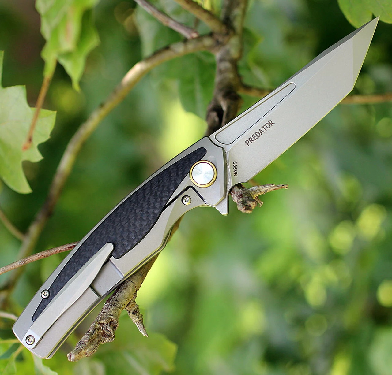 Bestech T1706B Predator, 3.6″ CPM-S35VN Plain Blade, Gray Titanium Handle w/Carbon Fiber Inlay