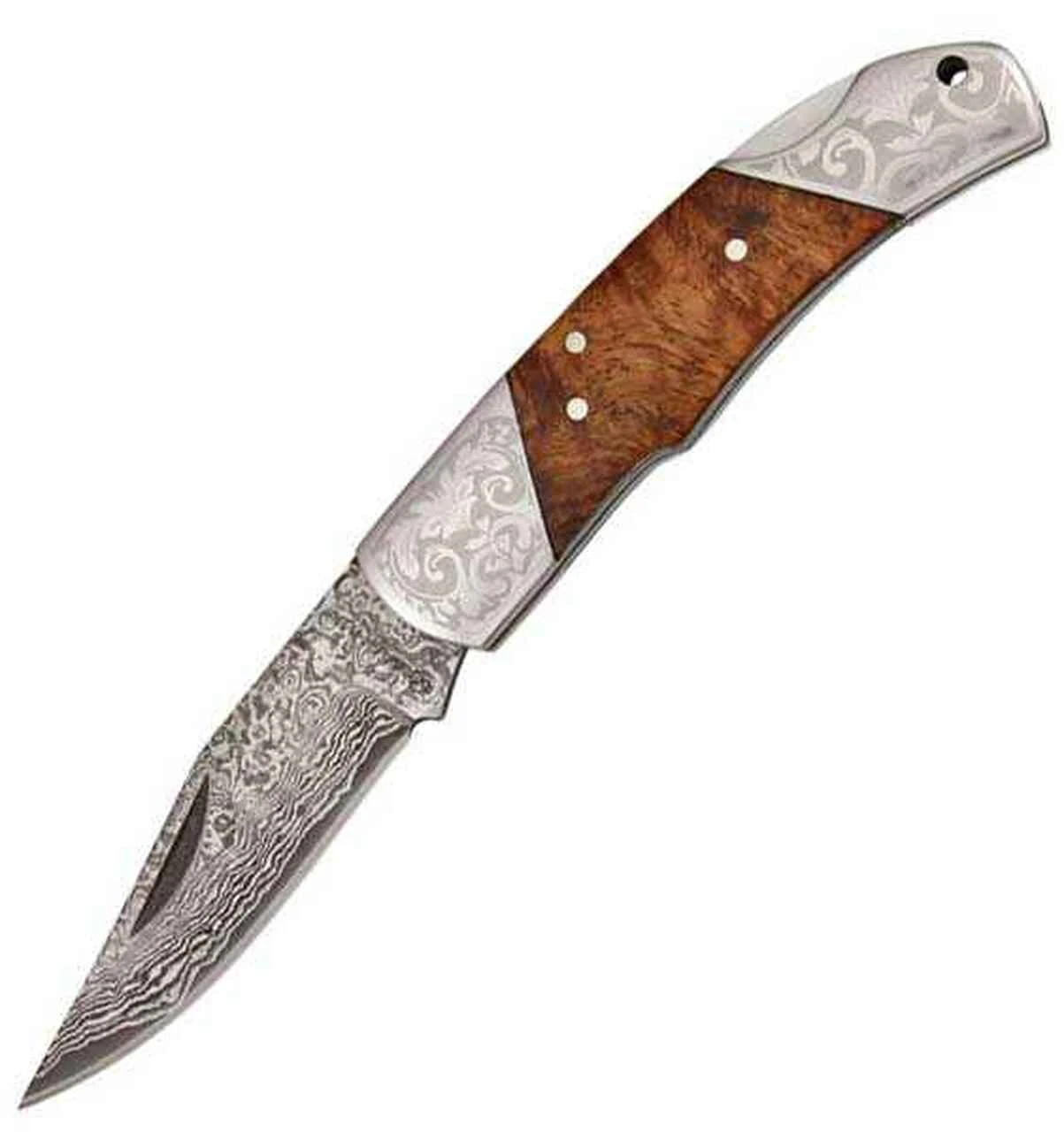Boker Magnum Duke Lockback, Damascus, Burl Wood Handle