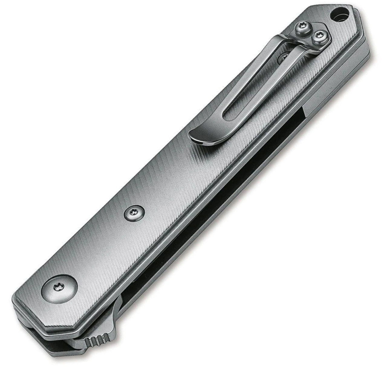 Boker Plus Kwaiken Mini Flipper 01BO267 3″ D2 Satin Plain Blade, Gray Carbon Titanium Handle