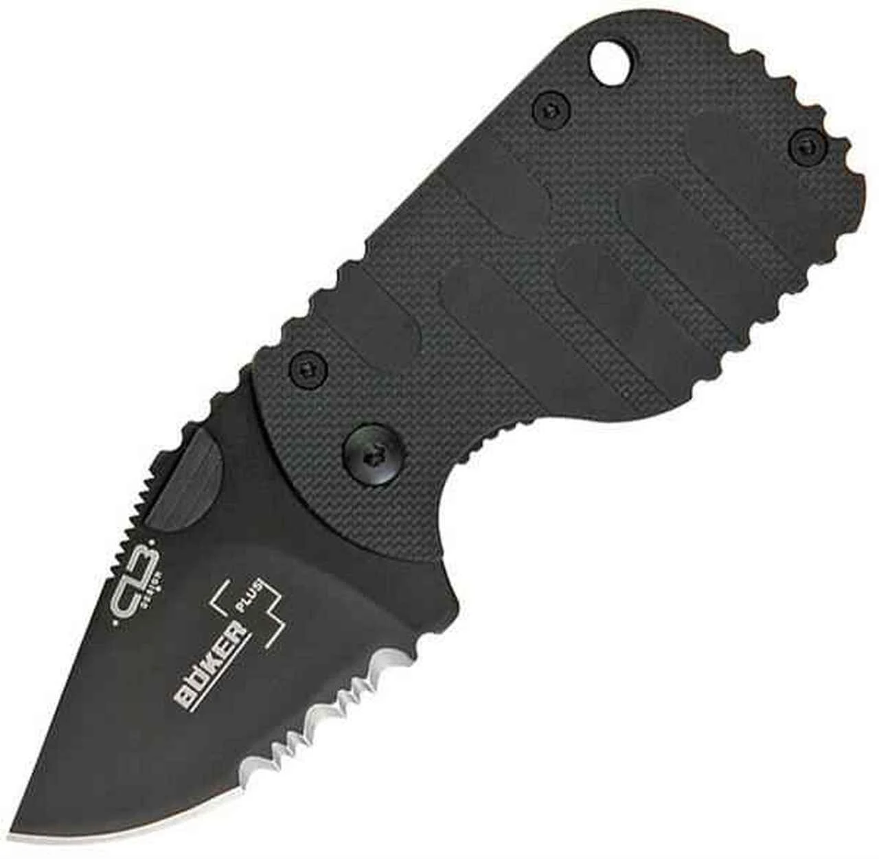 Boker Plus SUBCOM F Folder, Black Blade , Part Serrated
