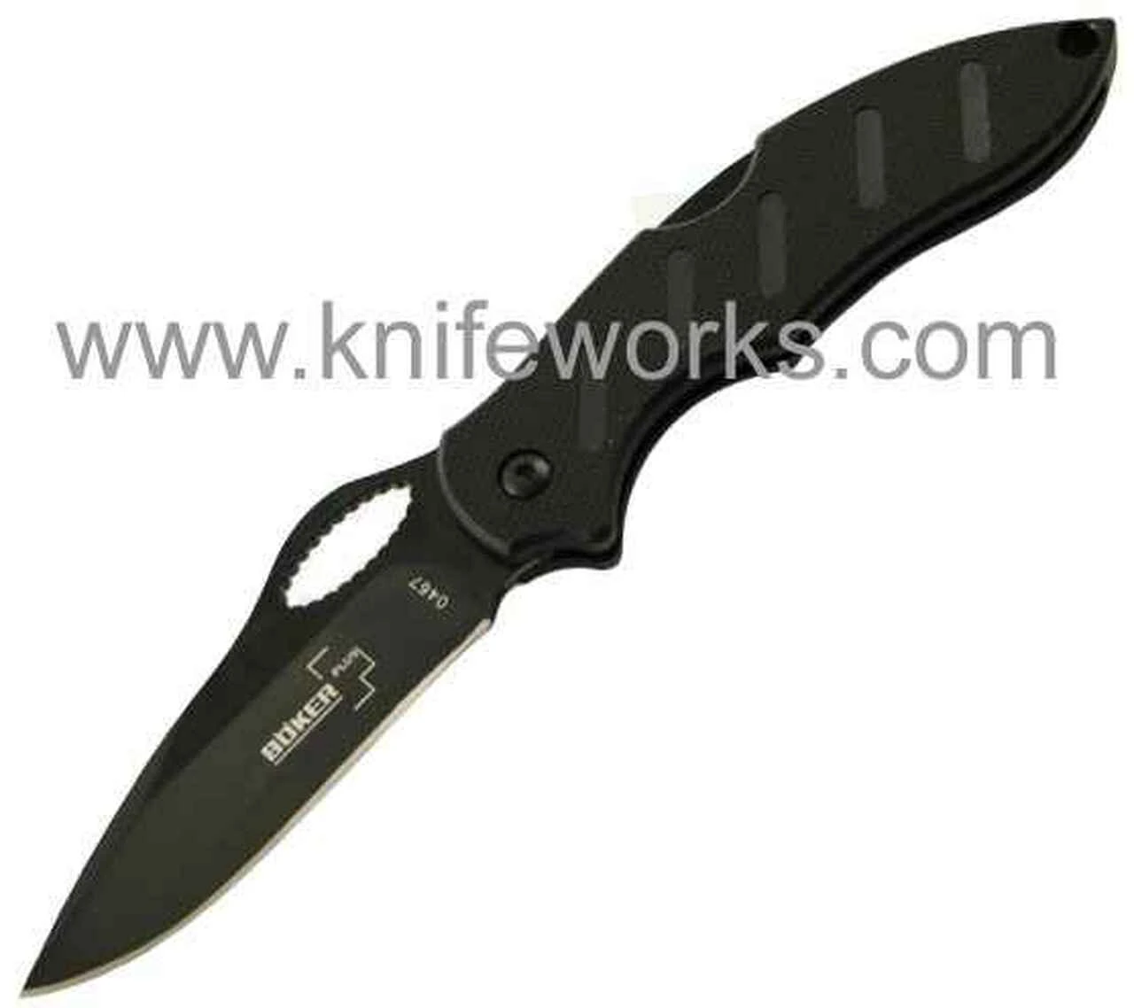 This tactical piece from Boker Plus can handle anything. Fiberglass reinforced nylon handle with a lanyard hole and reversible pocket clip. The plain edge blade is made of ultra sturdy AUS-8 steel, black-coated. Safety backlock system.
