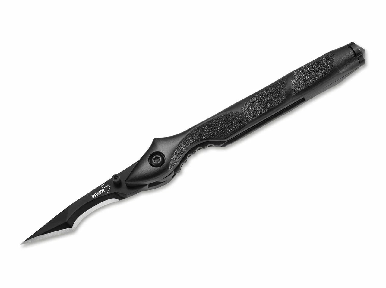 The Boker Plus Urban Survival is an extraordinary design by Jim Wagner. With a total length of 14.4 centimeters and a blade length of 4 centimeters, the Pocketknife offer though its compact dimensions an excellent carrying comfort. The sleek construction and 440C scalpel blade provide maximum control. The scales are made of black aluminum, a tough metal, which is very light and at the same time has a high strength. The interchangeable glass breaker completes the equipment of this unusual tool. With pocket clip and screwed thumb stud.