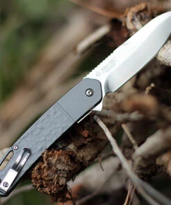 CRKT Bona Fide K540GXP, 3.59″ Satin Finish D2 Steel Plain Blade, Gray Scultped Aluminum Handles.